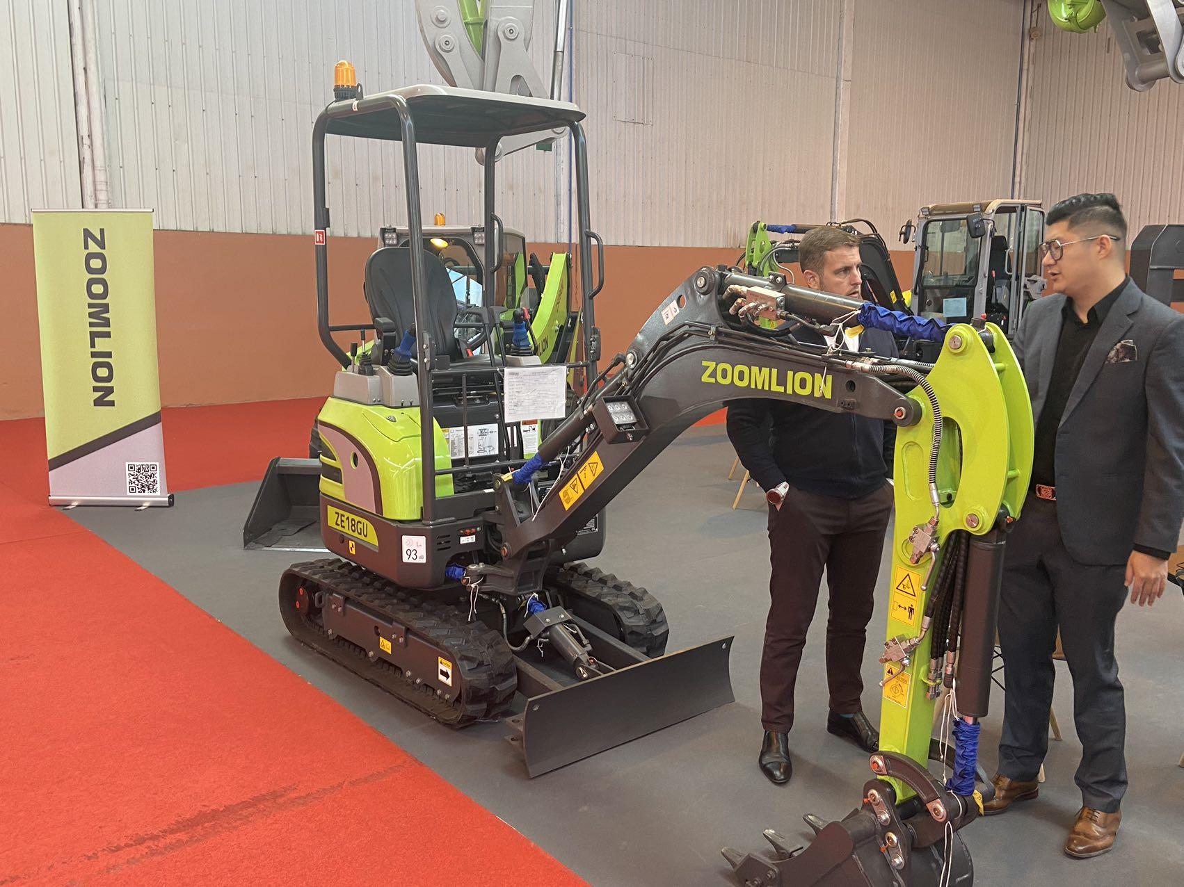 中联重科土方机械此次着重展示了5吨以下级别的机型,包括ZE18GU、ZE26GU、ZE35GU微型挖掘机和ZS090V滑移装载机,公司根据当地市场实际情况,针对驾驶室、发动机等进行了适应性改进,维修保养便捷且符合欧洲操作习惯,能更好满足客户需求。“我重点考察了这几款微小挖,它们工作高效、设计合理,操作驾驶安全舒适,ZOOMLION很不错!”一位当地代理商代表夸赞道。