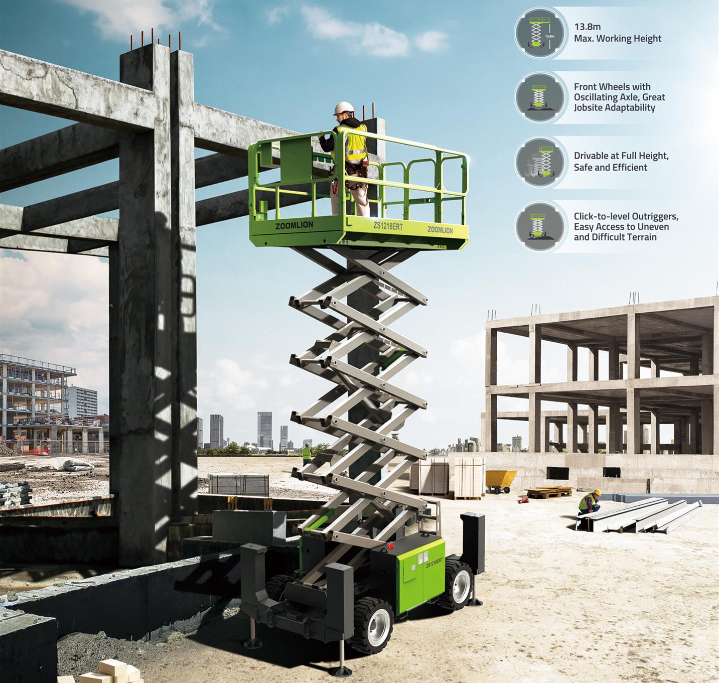 中联重科智能高机近年来高速发展,已位列英国KHL 2023年全球高空作业机械企业排行榜**7位,此次15款高空作业平台将集中亮相,其中电动化产品达到14款。以新品ZS1218ERT越野剪叉式高空作业平台为例,它采用模块化、轻量化、通用化、智能化等现代化设计手段,具有越野性能优越、工地适应强、维护方便快捷等特点,搭配基于物联网的租赁运营+设备监控一体化管理平台,让机队运营管理简单高效。