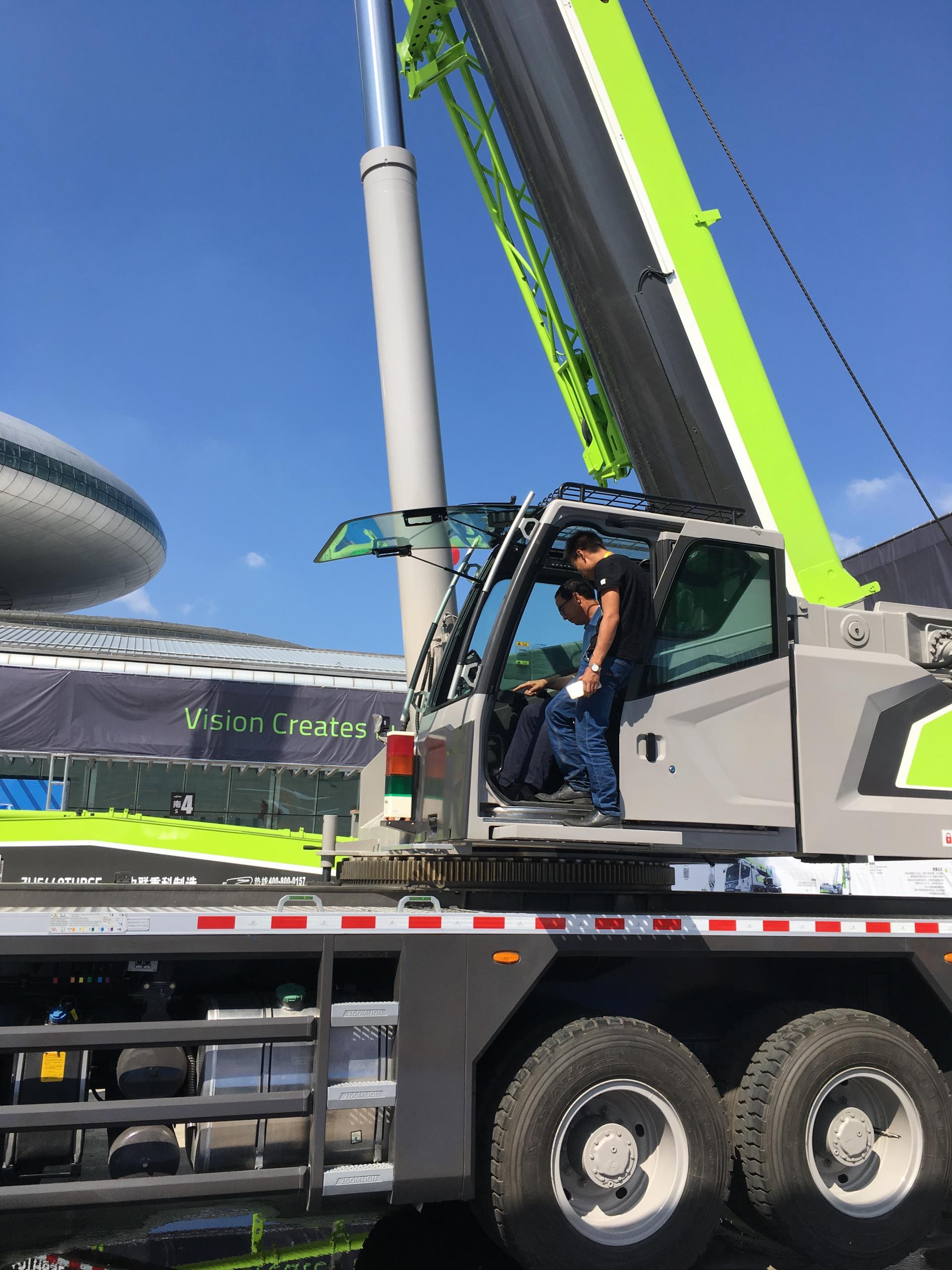 ▲客商登上中联重科起重机操作室体验产品