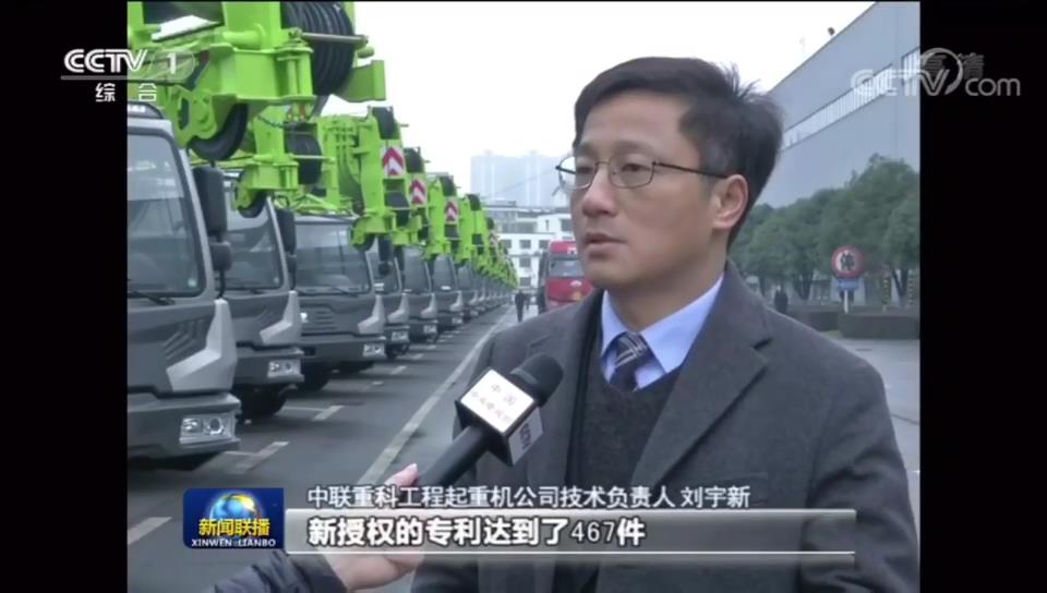 据《新闻联播》报道,前段时间,中联重科4.0汽车起重机从长沙起运发往全国各地,中联重科工程起重机公司技术负责人刘宇新表示:“新授权的专利达到467件,带来生产制造的批量化,包括用户使用成本的降低。”