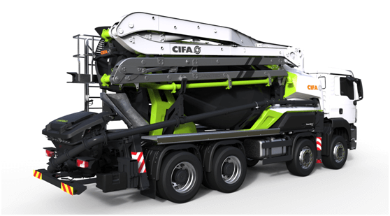 ▲即将亮相德国宝马展的中联重科CIFA搅拌布料泵车