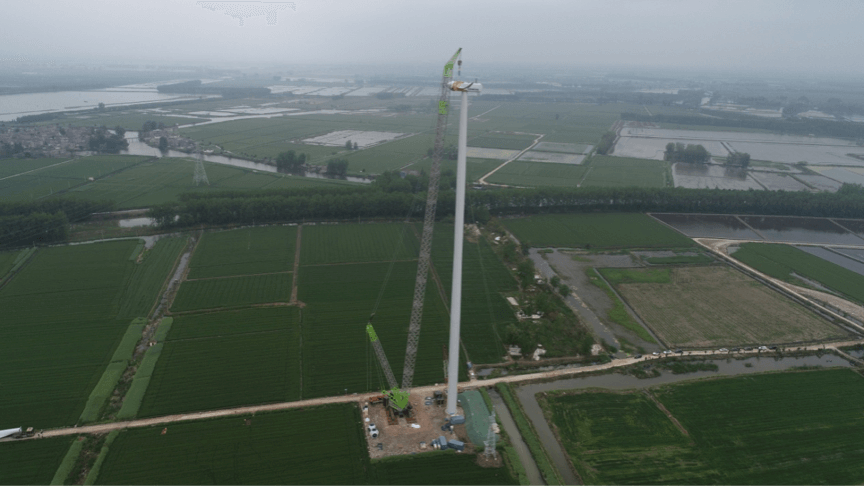 ▲中联重科ZCC9800W起重机顺利完成整个风机组装工作