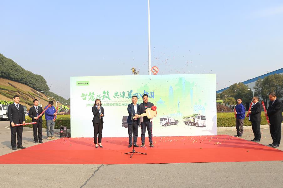 深圳市福鼎机械设备有限公司董事长程租宝,总经理张荣权;中联重科助理总裁、泵送事业部总经理黄建兵等公司领导;以及中联重科混凝土机械公司员工代表等百位嘉宾共同见证了交付盛况。