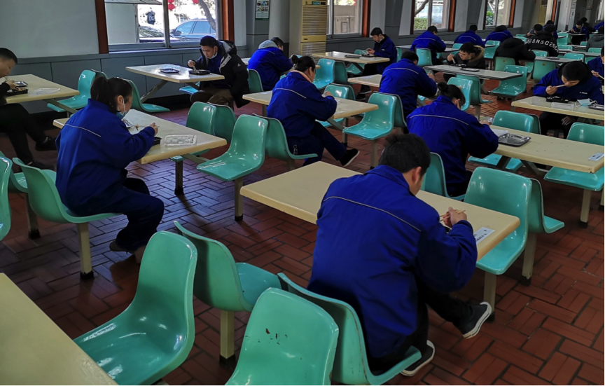 ▲中联重科采用分餐制,员工一人一桌、有序就餐