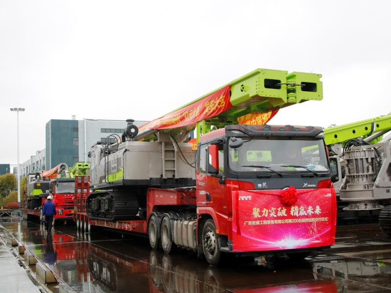 3月27日上午9时58分,中联重科4.0系列旋挖钻机产品批量发车暨广东宏盛工程装备有限公司**200台中联重科旋挖钻机交付仪式在中联重科上海工业园隆重举行。