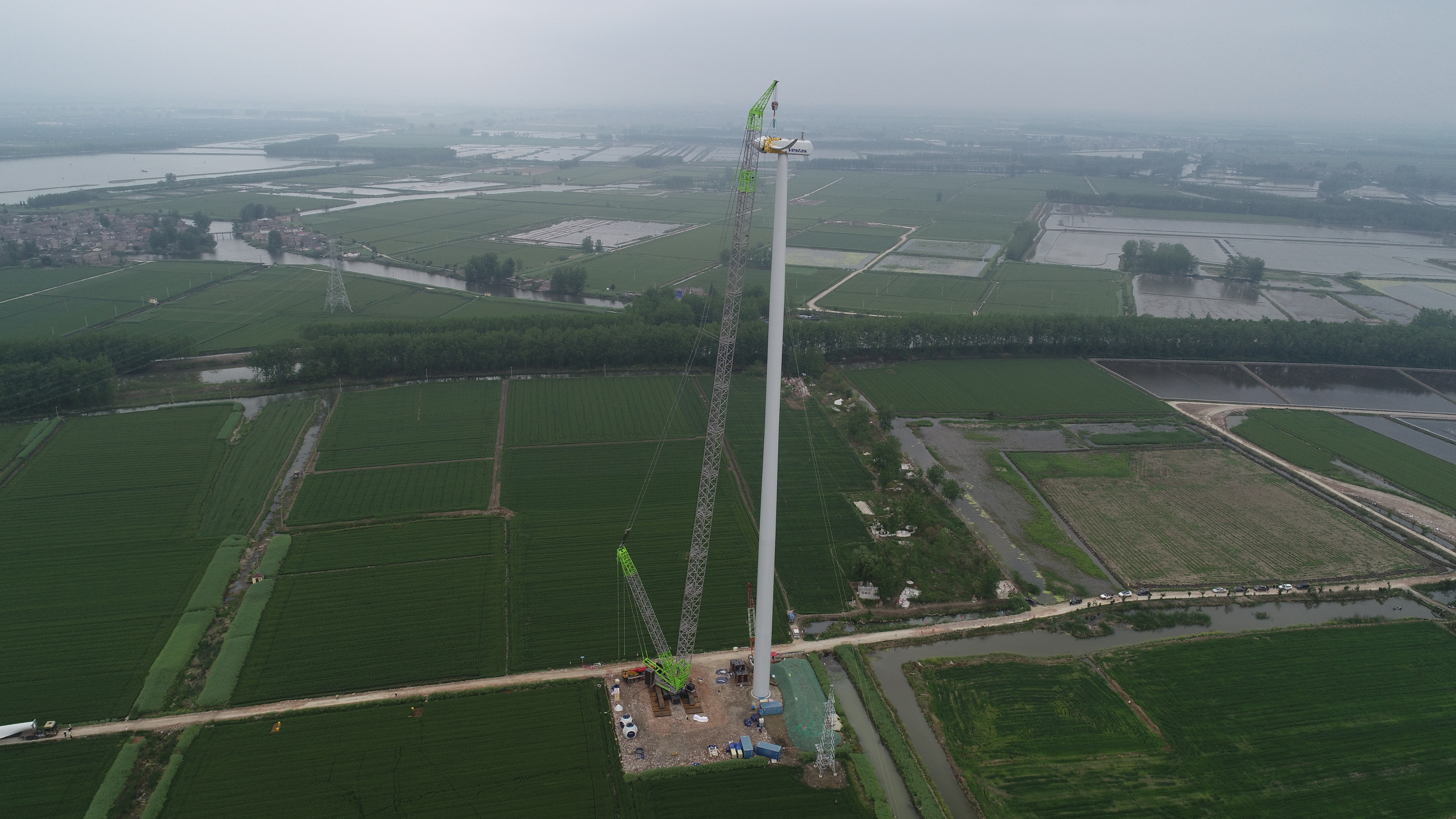 据了解,小涧风场位于蒙城县小涧镇,地处淮北平原中部,属涡河蒙城段上游之北,地势由西北向东南倾斜,属于温带半湿润季风气候,季风明显,四季分明,风电资源具有低风速、高切变的特点,即风机高度越高风速就越大。该风电项目3MW大容量风机加上130余米高度安装,对起重机性能要求极为苛刻。