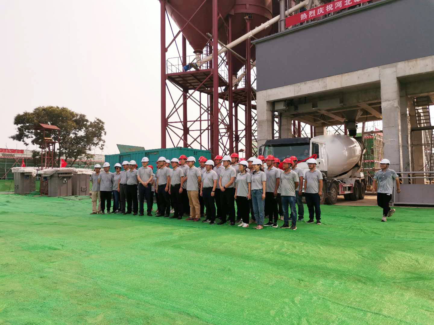 △中联重科建设打造的雄安二号搅拌站成功出料仪式现场