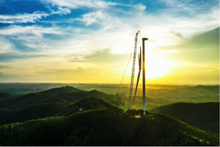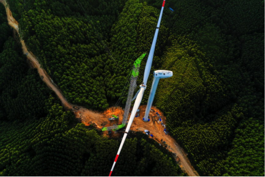 合浦曲樟风电场工程位于广西合浦县东北部,这里风力资源丰富,然而想要利用这些大自然的馈赠并非易事。风电场选址在植被茂密的丘陵地区,交通不便、土质较软,而且因在丘陵顶端,开辟出的施工场地非常狭小。要在这样的山地工况下吊装140米高的风电塔,国内尚无前例,施工前,行业内对此项目能否顺利进行一直有着各种各样的猜测。