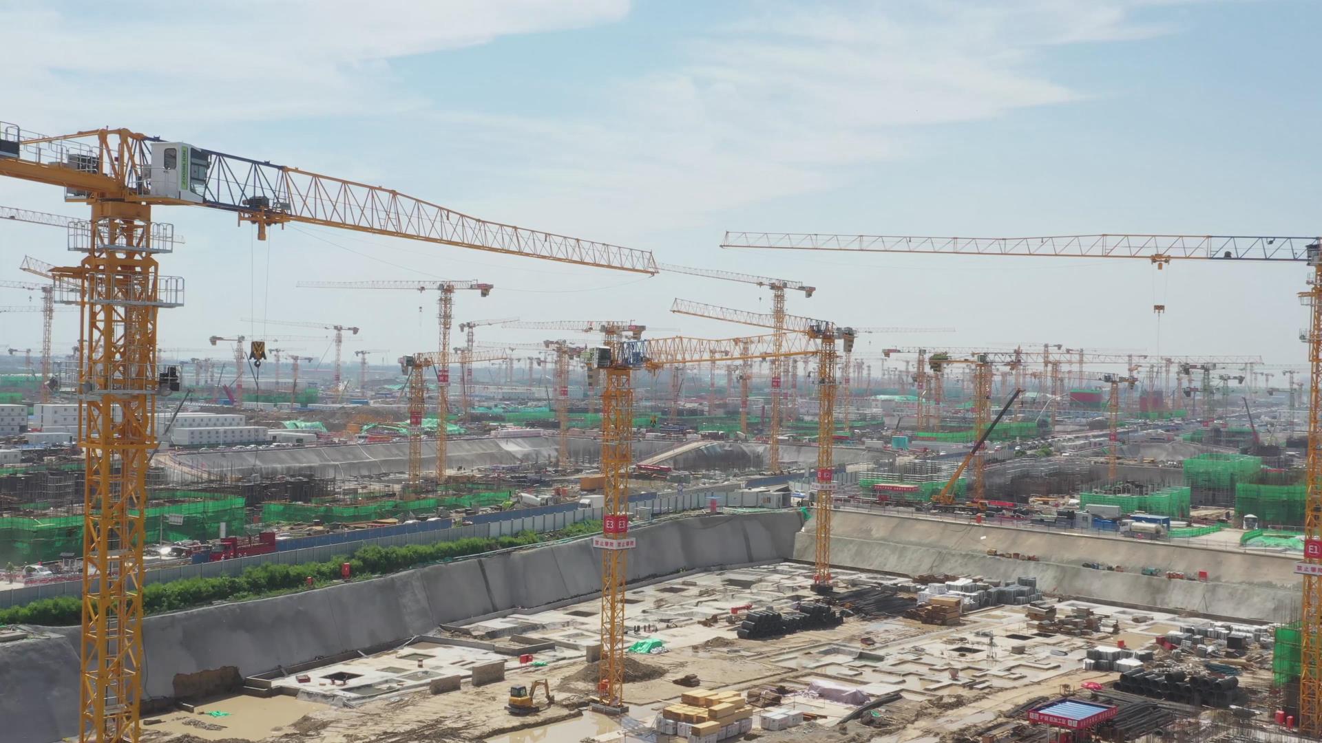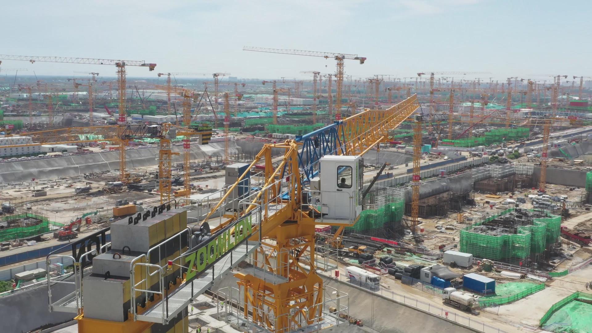 △雄安新区建设工地现场,中联重科设备组成的“塔机之林”