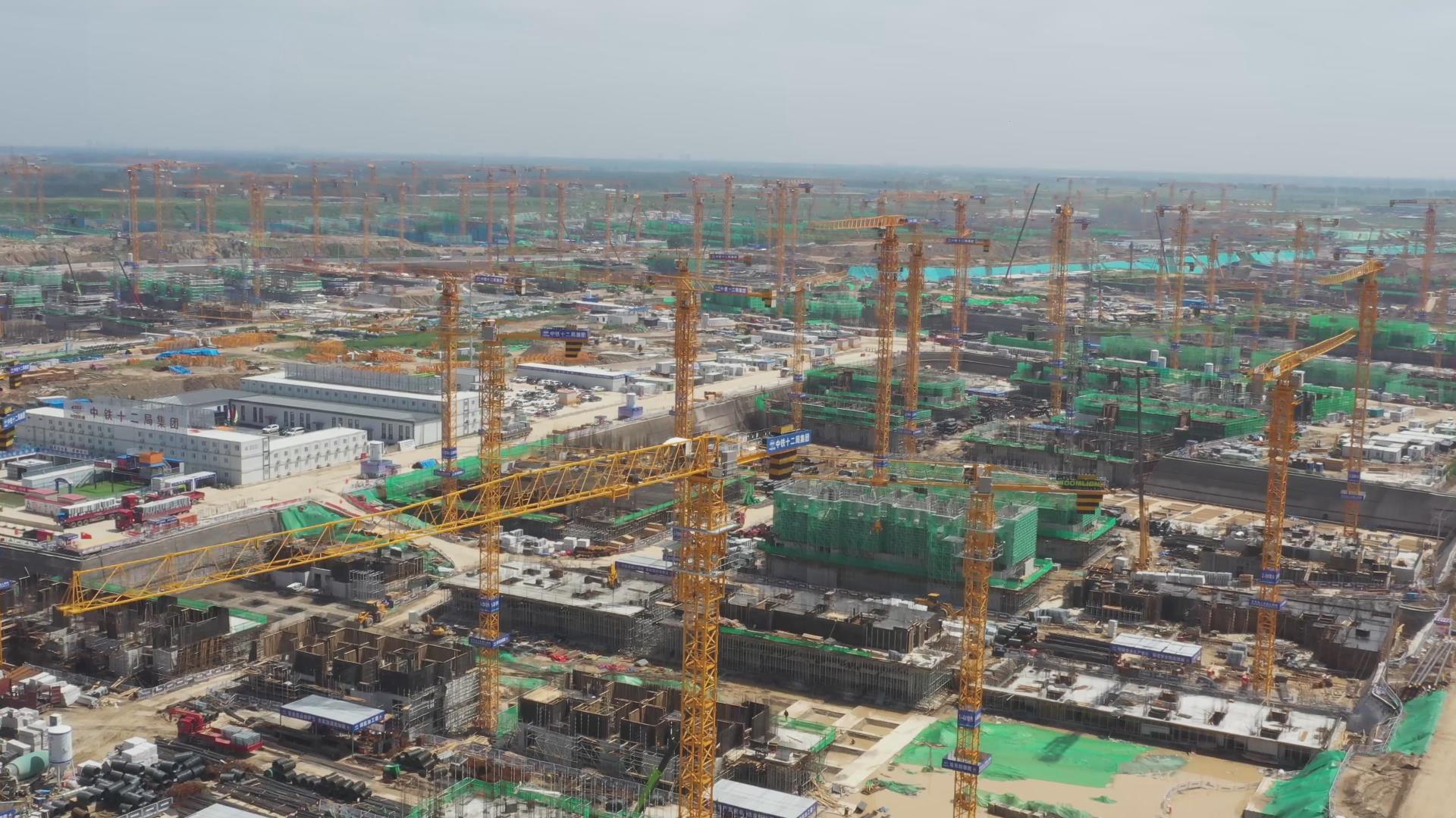 △雄安新区建设现场中联重科塔机林立,蔚为壮观