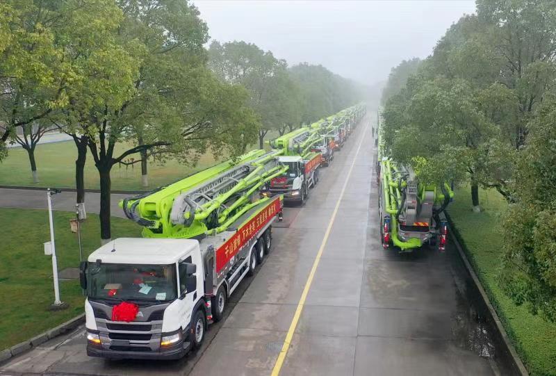 ▲中联重科混凝土泵车从麓谷工业园缓缓驶出