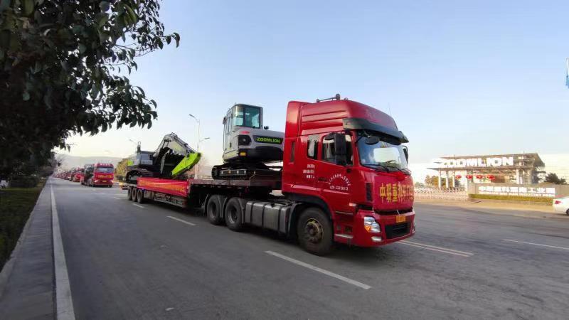▲中联重科挖掘机、推土机从渭南工业园缓缓驶出奔赴全国