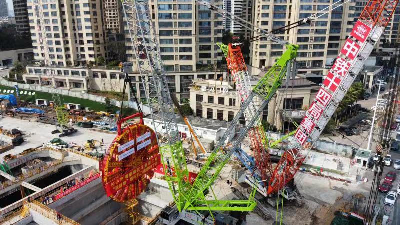 近日,在湖南长沙湘雅路过江通道施工现场,中联重科两台大型履带起重机顺利地将重约500吨的盾构机刀盘吊装至盾构始发井中,圆满地完成了盾构机安装中难度**高的一项工序。吊装过程中,翻身、直立、下井,一系列动作行云流水,中联重科履带起重机精准、平稳、高效的作业赢得了广泛称赞。
