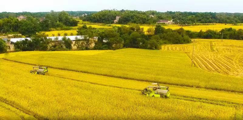 秋高气爽 星星绿意点缀金黄稻田