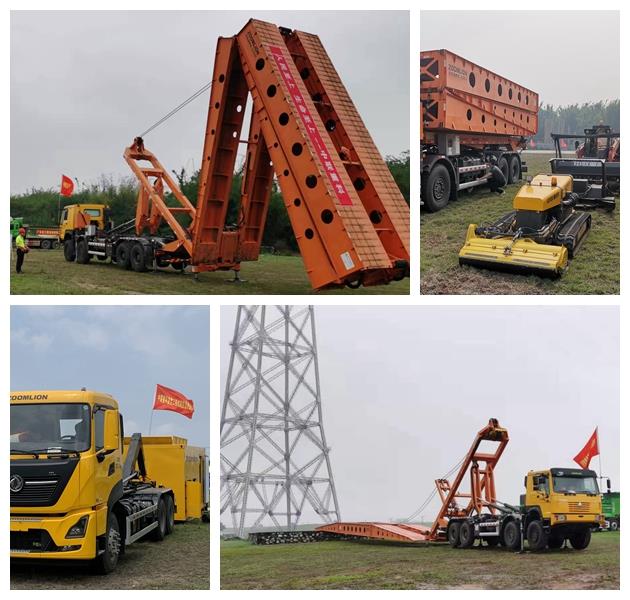 中联重科应急架桥车已经多次考验,在本次演练中表现一如既往地“沉稳”。在洪水冲毁了道路、桥梁的模拟情景中,中联重科应急架桥车迅速展开架桥,操作机手手持遥控器,短短十几分钟,一座长25米、宽3.2米的临时桥梁就已搭建完毕,迅速恢复了通行。该临时桥梁可承载30吨,**大限度保障人员、设备、物资安全通过。