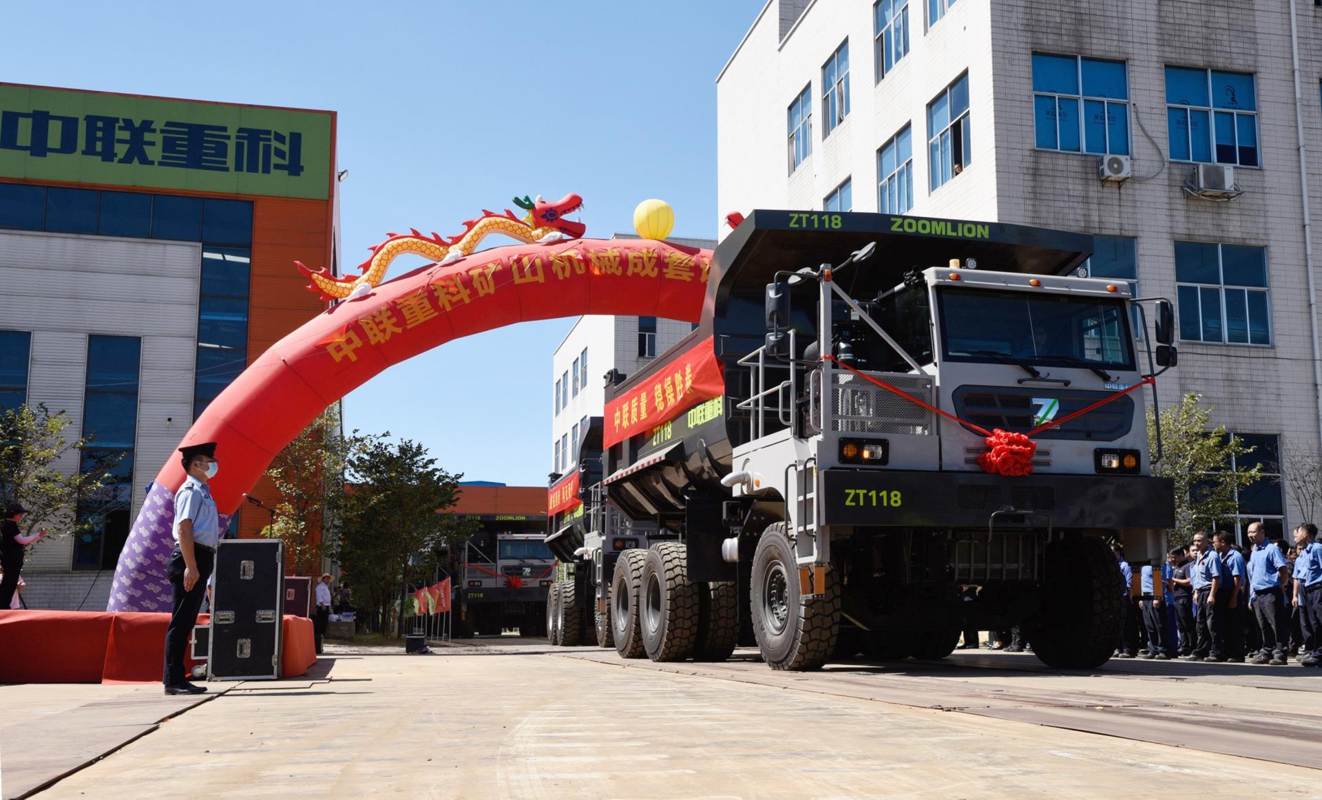 据介绍,本次发车的设备涵盖了露天采矿的主要领域,包括矿用钻机、矿用挖掘机和矿用自卸车。其中,发车数量**多的是中联重科ZT118矿用自卸车,作为同类车型中的高端产品,它不仅采用全焊接的车架,保证了结构强度和寿命,还采用全油气悬挂,大大提高了抗冲击能力和驾乘舒适性,能轻松应对矿场中各种恶劣的工况。