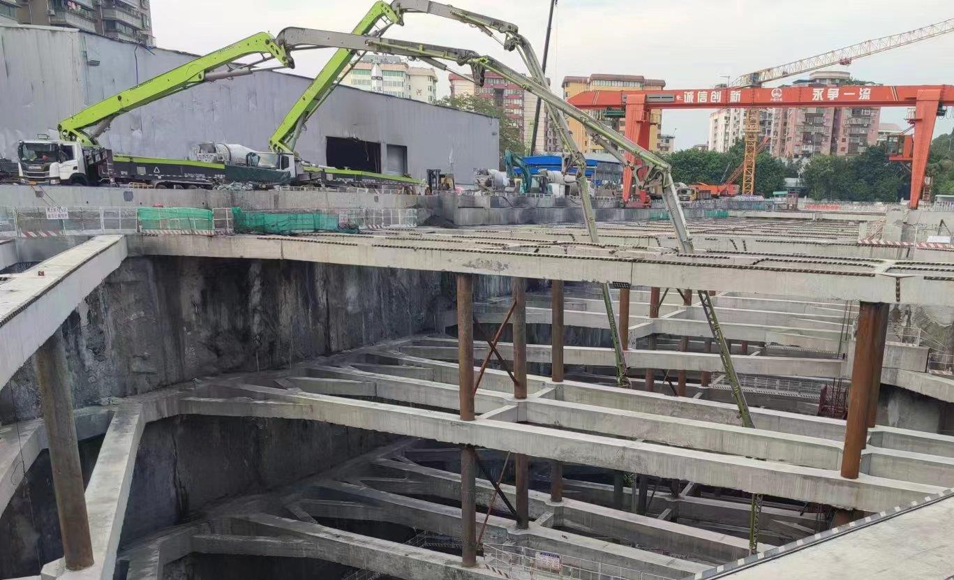 10月9日,在多台中联重科混凝土泵车持续助力下,广州首条环线地铁11号线的广园新村站主体深基坑完成全部浇筑,顺利实现封底,迎来建设新突破的同时,也为该条地铁线路后续开通运营奠定了坚实基础。
