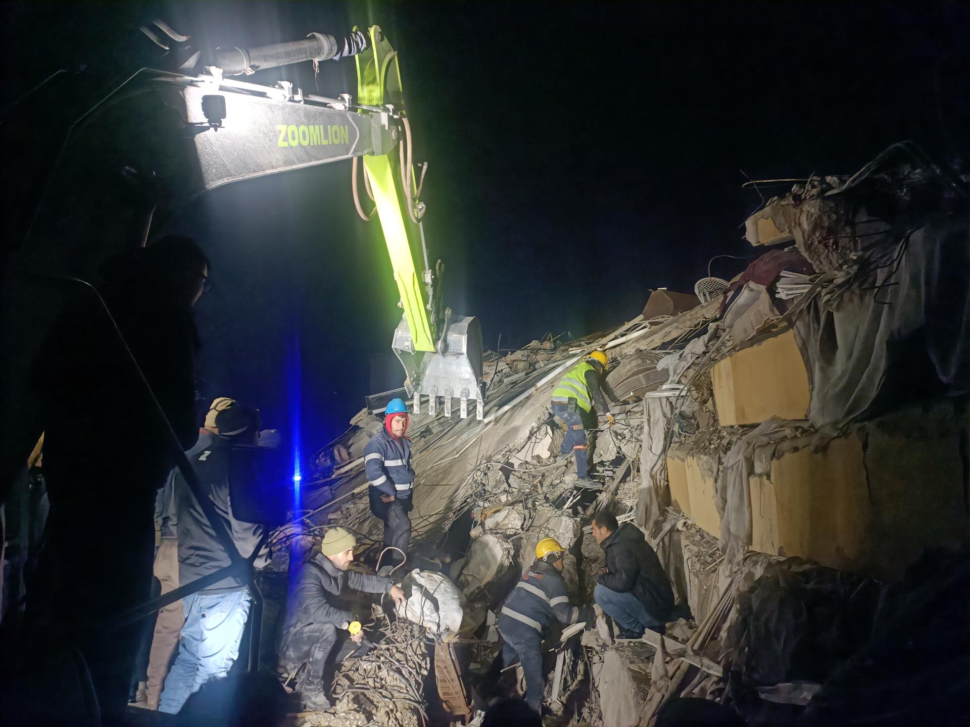 地震发生后,根据公司指示,中联重科土耳其子公司立即派出由专业服务工程师、机手组成的救援团队,携带灾区急需的电热毯、应急药品、食品等物资,与首批5台挖掘机设备连夜启程,赶往灾区。