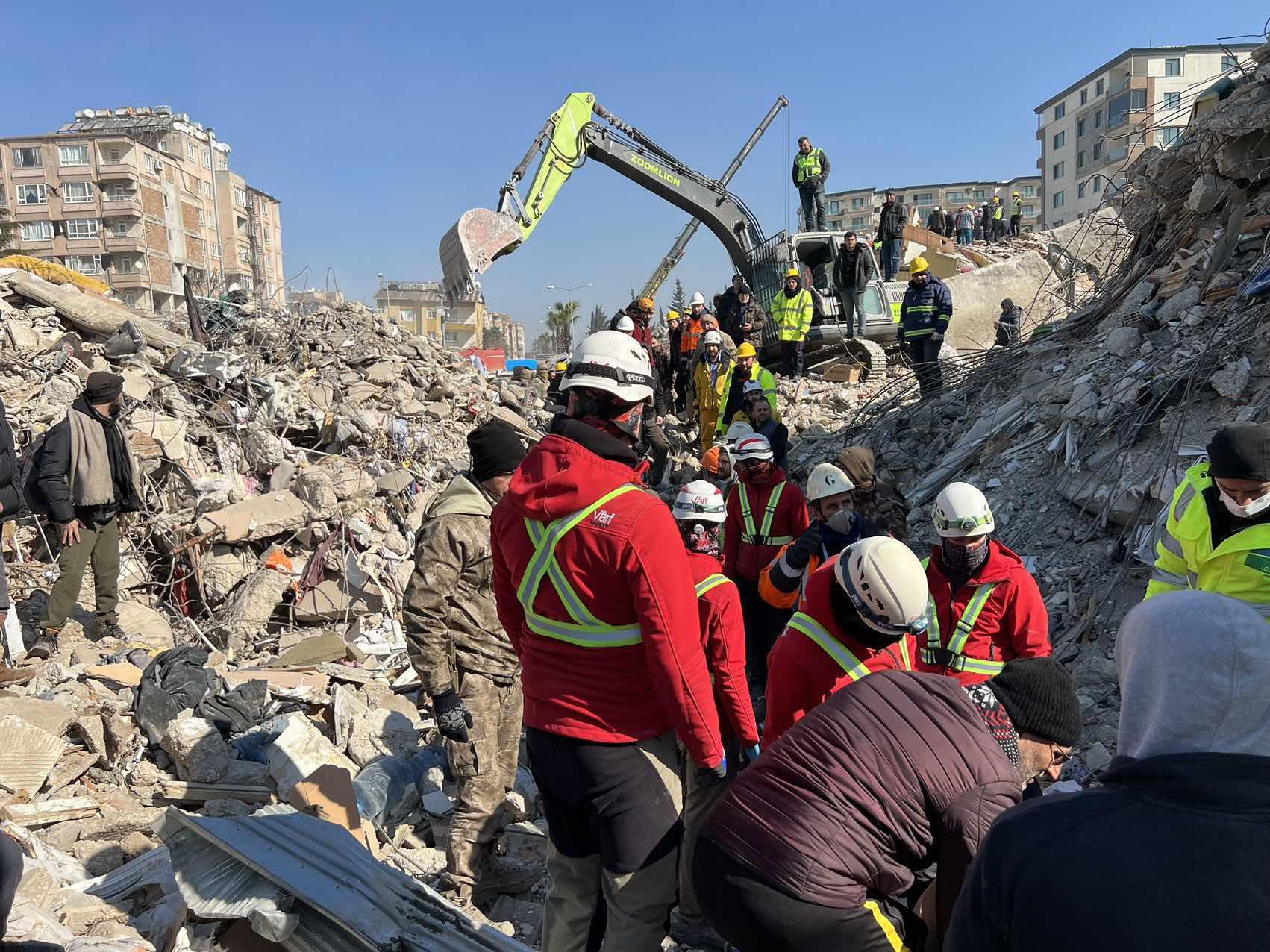 随着救援行动有组织有序开展,中联重科参与救援的力量也不断壮大。目前,在土耳其地震灾区已有挖掘机、履带吊、汽车吊等多种类型的中联重科设备参与救援。经过三天三夜的持续奋战,中联重科救援队在哈塔伊省已救出30多名被困者。
