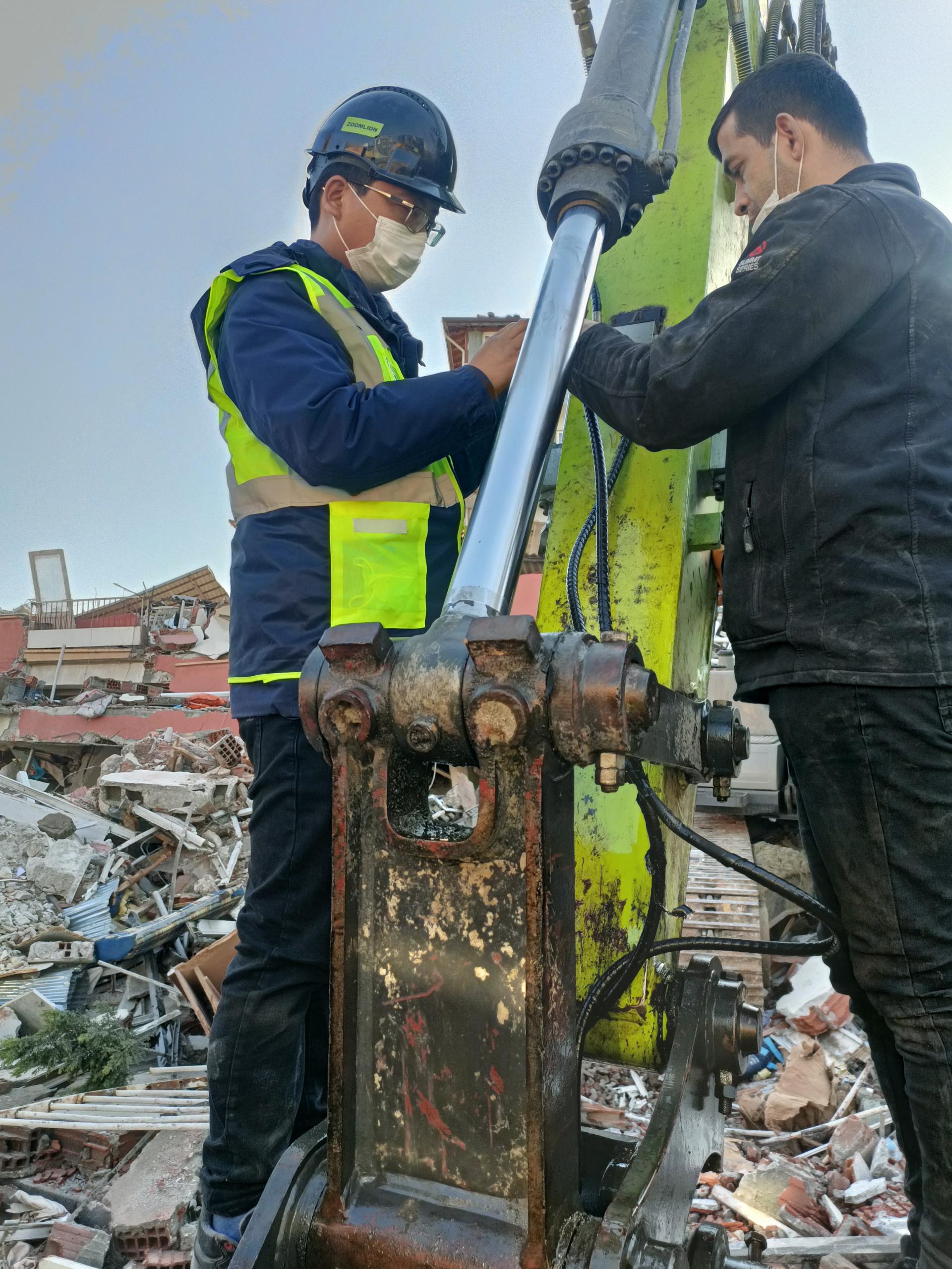 土耳其地震发生后,中联重科总部**一时间指示当地分公司成立救援队,紧急调集人员、物资和设备,首批5台挖掘机新设备和大批灾区急需的物资与救援人员星夜兼程,16个小时狂奔1000多公里,从伊斯坦布尔一路穿越暴风雪和道路封锁抵达哈塔伊省受灾现场。