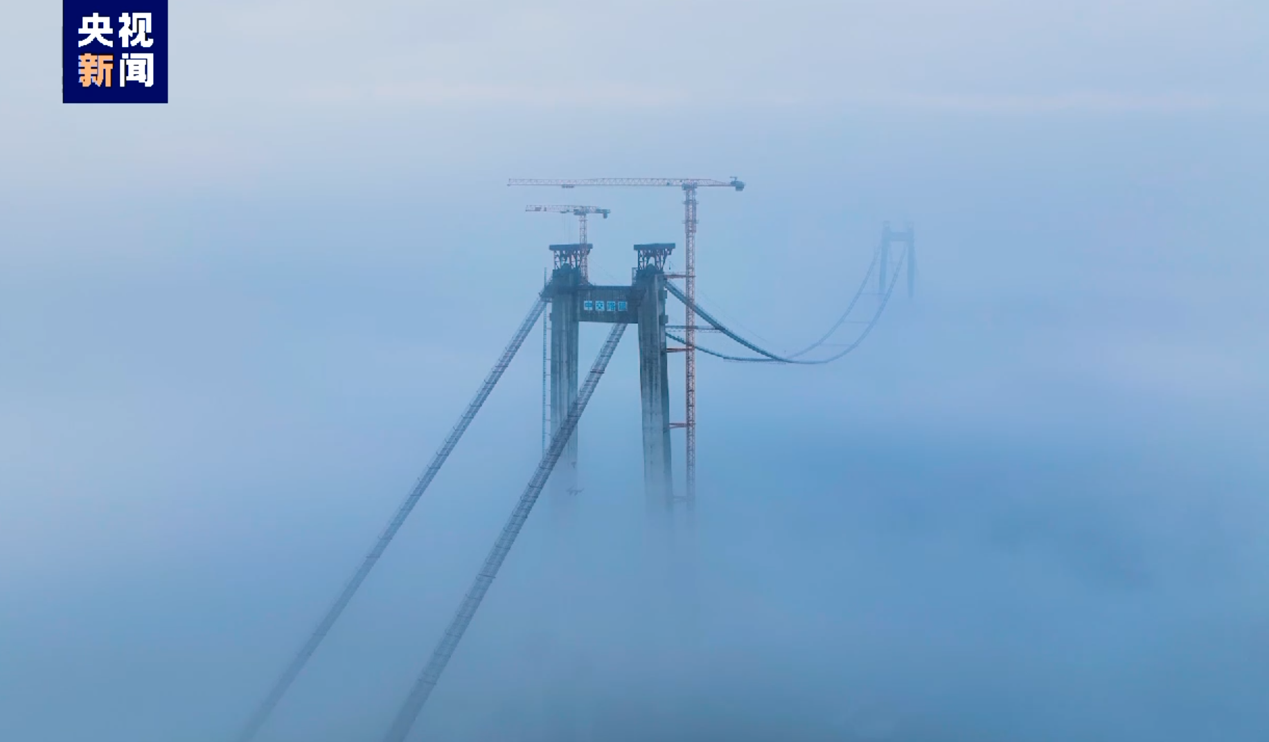 ▲龙门大桥项目建设现场(图片来源于“央视新闻客户端”)