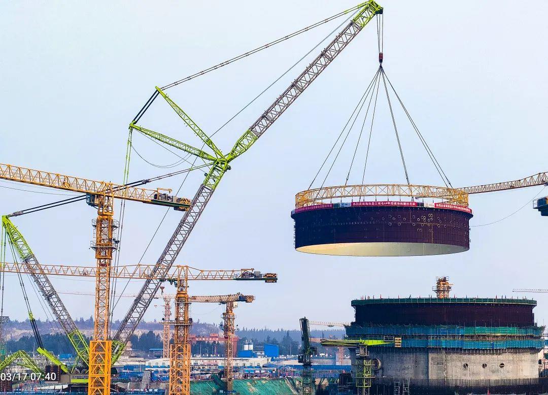 3月17日8时08分,海南昌江核电4号机组核岛反应堆厂房内壳钢衬里模块四吊装就位,历时3时10分,整体吊装过程安全、可控,中联重科ZCC32000履带吊圆满执行任务,助力施工节点较专项计划提前25天完成,为实现年内双堆穹顶吊装奠定了坚实基础。