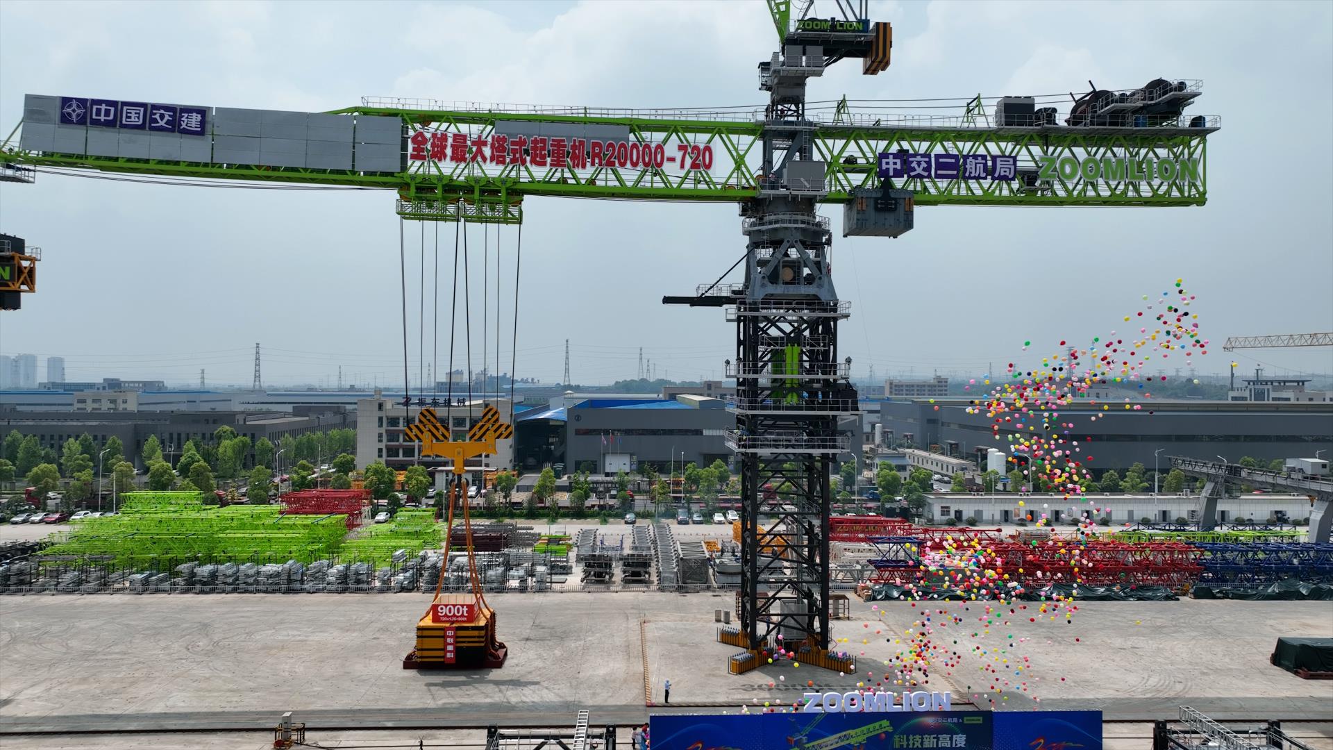 全球**大塔式起重机R20000-720是中联重科与中交**二航务工程局联合研发,额定起重力矩20000吨米,**大起重量720吨,**大起升高度400米,相当于一次将500辆小轿车起吊至130层楼的高度。该产品融合了158项创新科研成果、305项发明专利,其中包括60余项核心关键技术和12项世界首创技术,登顶世界塔机的王者巅峰,是名副其实的大国重器。