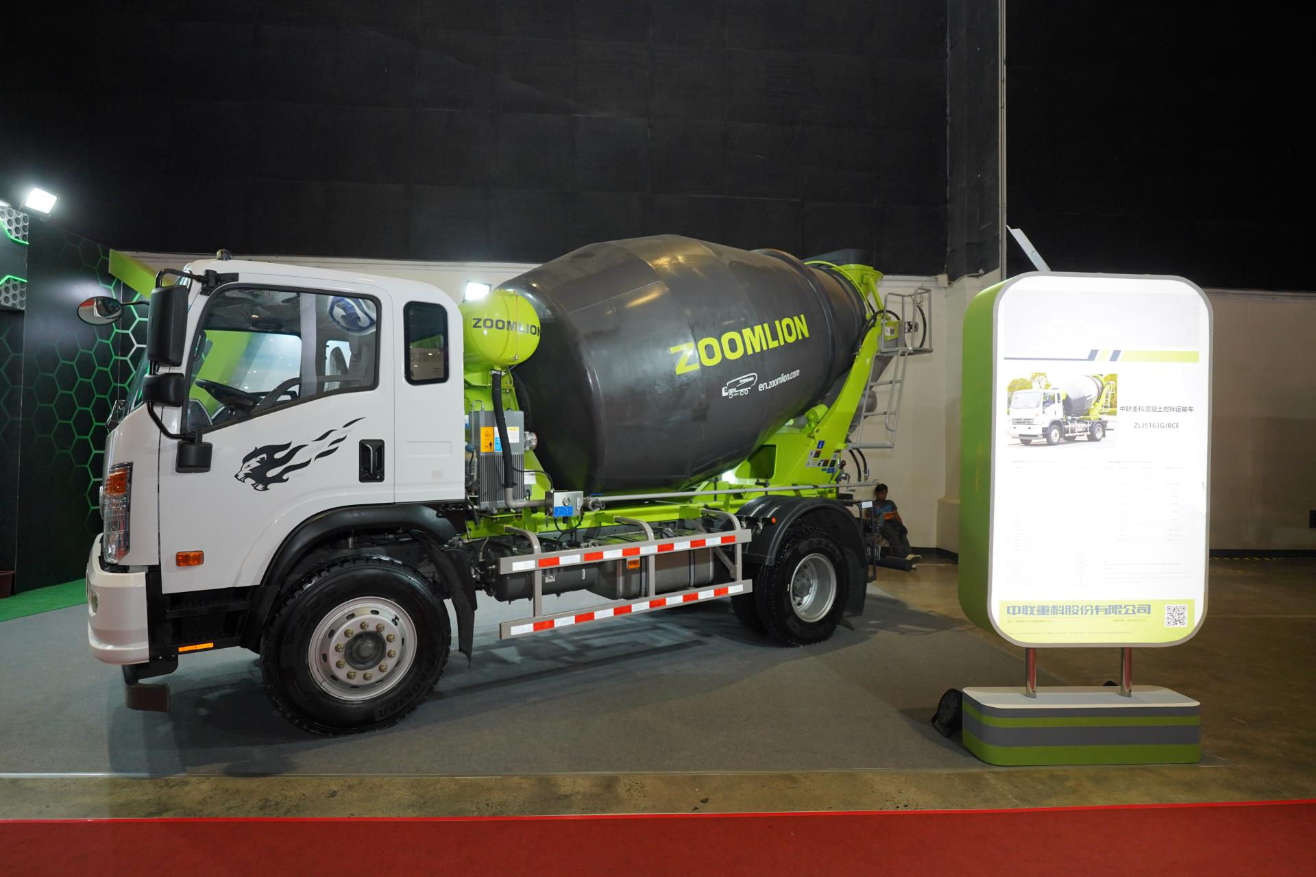 △中联重科展出的挖掘机、搅拌车和汽车起重机等