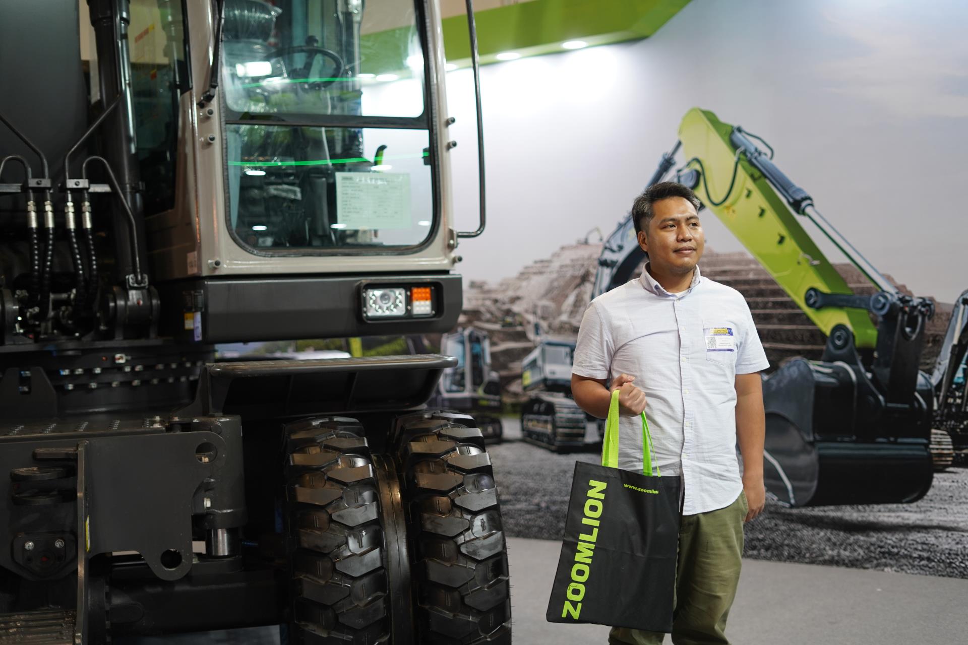 充分满足市场需求让中联重科产品赢得了更多客户青睐。以土方机械为例,此次中联重科带来了中大吨位挖掘机ZE215E ACE和轮式挖掘机ZE150WG。其中,ZE215E属于出口东南亚的主力机型之一,ACE款则专为菲律宾市场“量身定制”,拥有动力十足、安全舒适等优势,非常适应当地工况,且采用当地流行品牌发动机,更省油耐用,维护保养和更换配件也更便捷,更受当地客户欢迎。