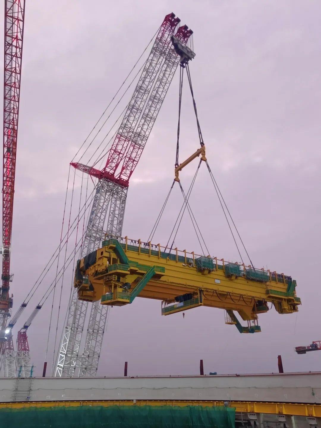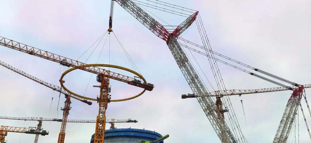 ▲中联重科起重机正在吊装昌江核电4号机组环梁环轨(图片源于“华能昌江核电”公众号)