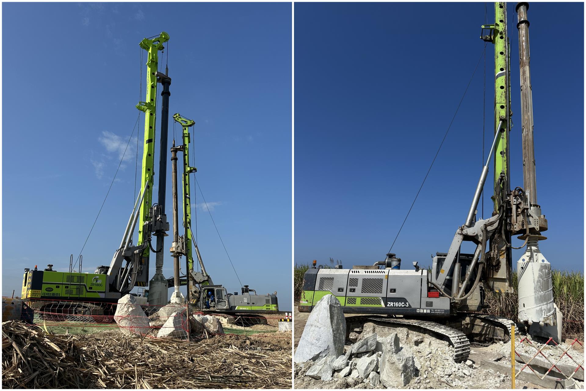 据项目负责人介绍,海南当地地层复杂多变,岩层高低不等,普通旋挖钻机设备施工困难重重,遇到砂土层极易出现塌孔,遇到中风化花岗岩层,截齿消耗较大,还容易出现取岩芯困难的问题。中联重科ZR180G旋挖钻机具备高稳定、高效率、高精准的施工特点,可实现一次性成孔,高度契合该项目需求,对比同类产品施工表现更出色。