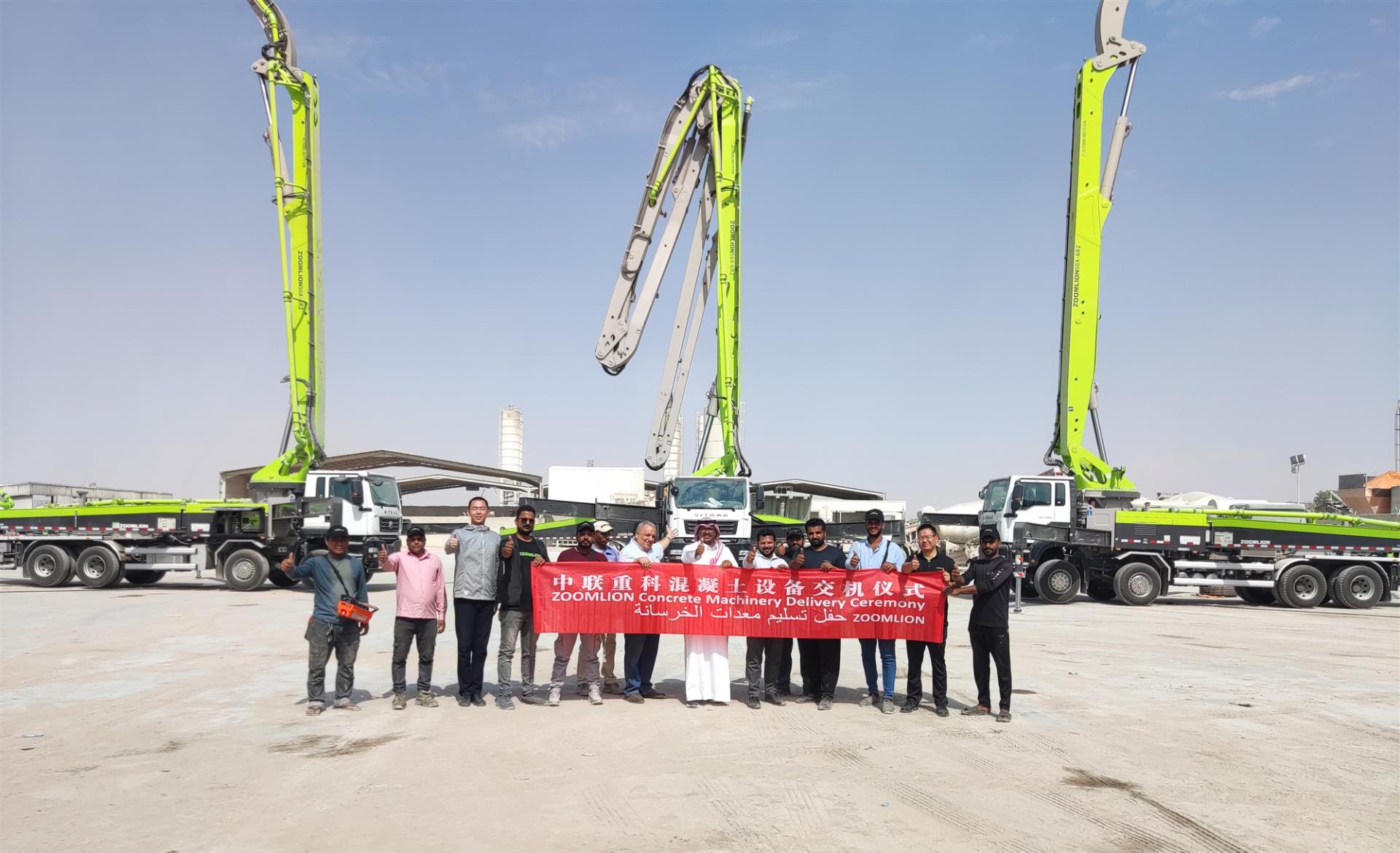 近日,在沙特阿拉伯利雅得,30多台中联重科混凝土机械设备批量交付当地行业客户,泵车、搅拌车明星产品陆续运抵现场,并以出色的施工首秀表现,赢得客户方一致好评。随着中联重科产品持续火爆沙特,极光绿已成为当地工程建设中的“流行色”。