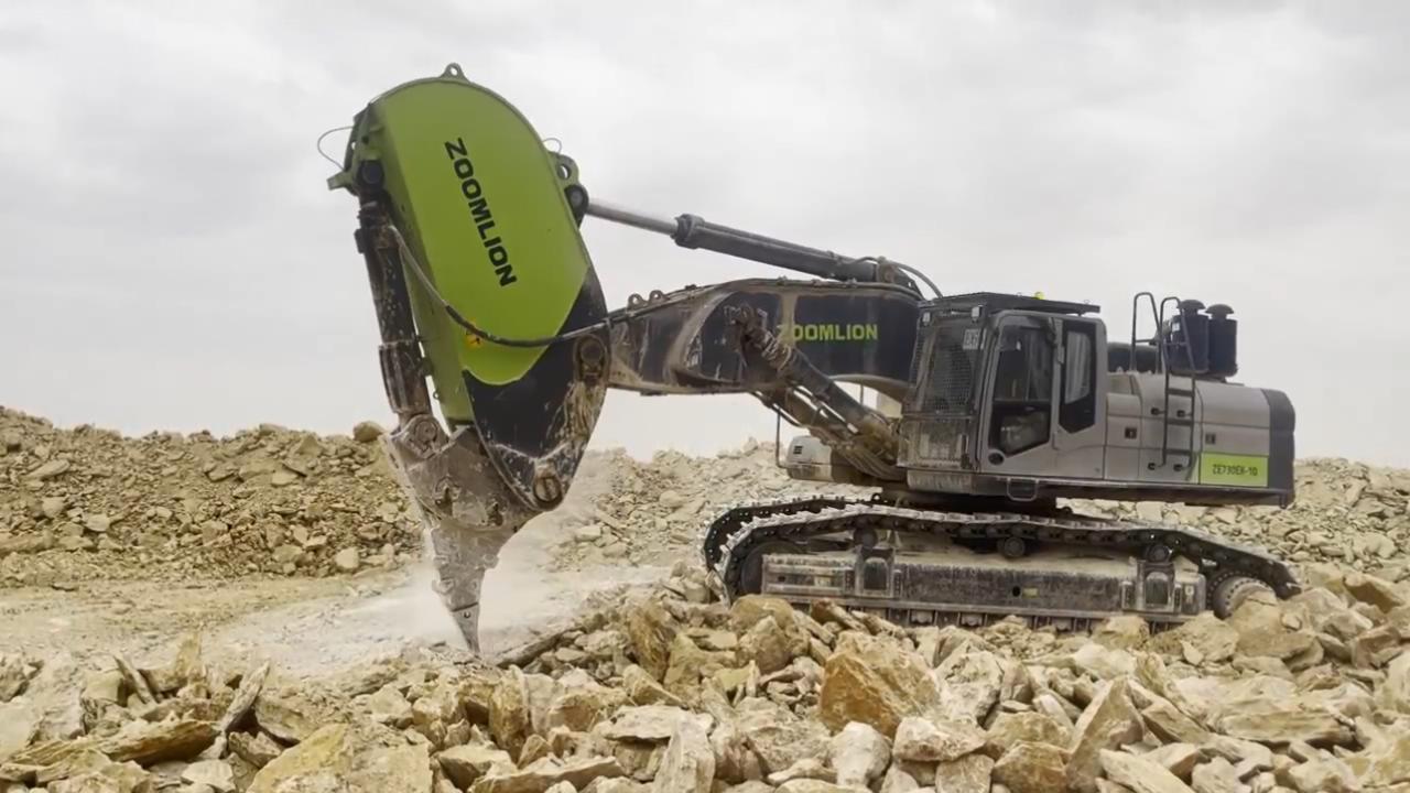 在土方包项目中,除了参建的数十台中联重科挖掘机外,建设团队结合项目岩石硬度和岩性分析,首次引进了7台有“破碎先锋”之称的中联重科鹰钩臂挖掘机进行石方开挖作业。鹰钩臂挖掘机是风化石、页岩石、红沙岩等挖掘破碎的利器,相比传统的破碎锤作业,具有高效率低损耗的优点,工作噪音更低,相比爆破作业而言作业效率更高、安全性能更强、也更加环保。