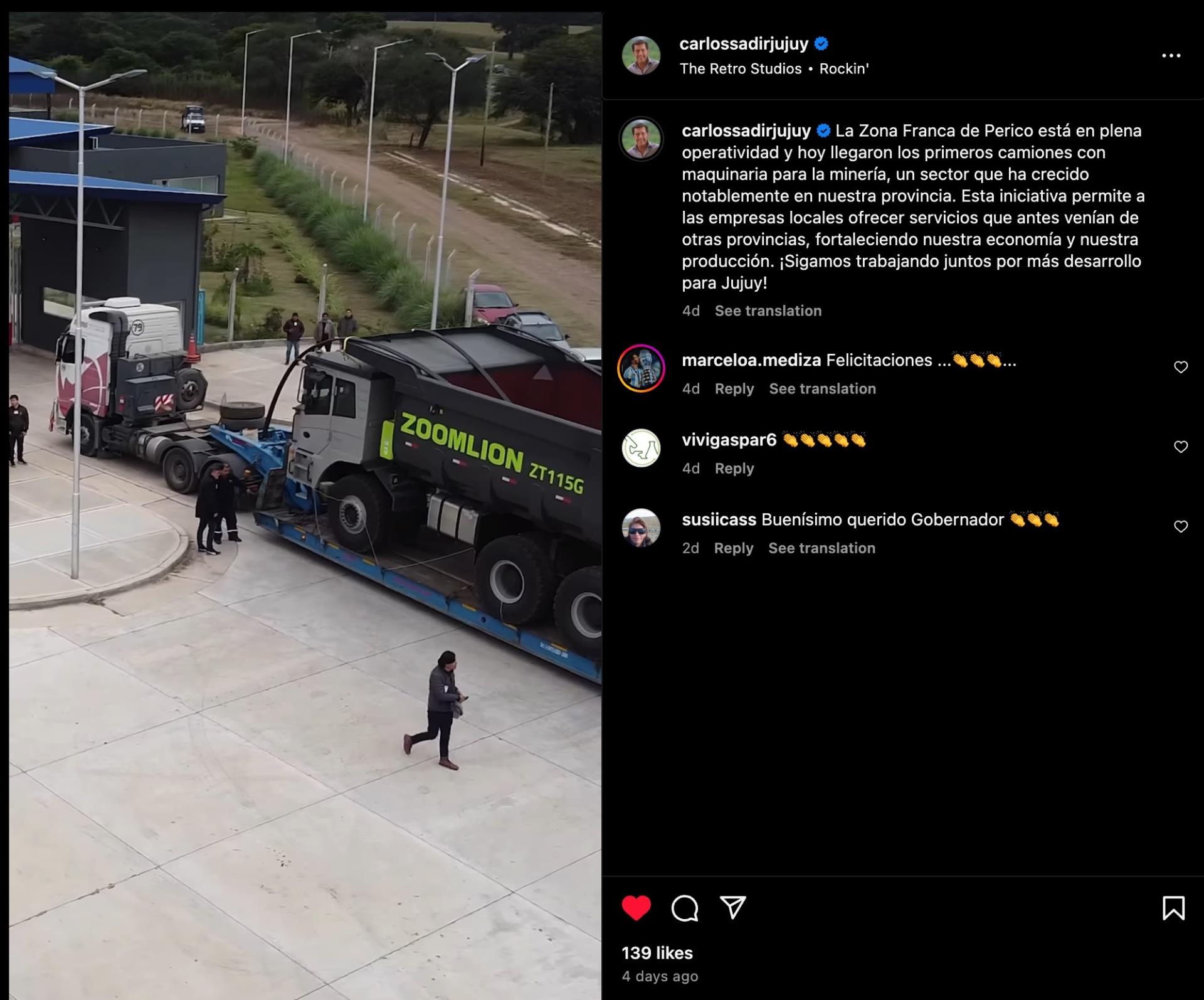 △阿根廷胡胡伊省省长卡洛斯·萨迪尔在社交媒体分享