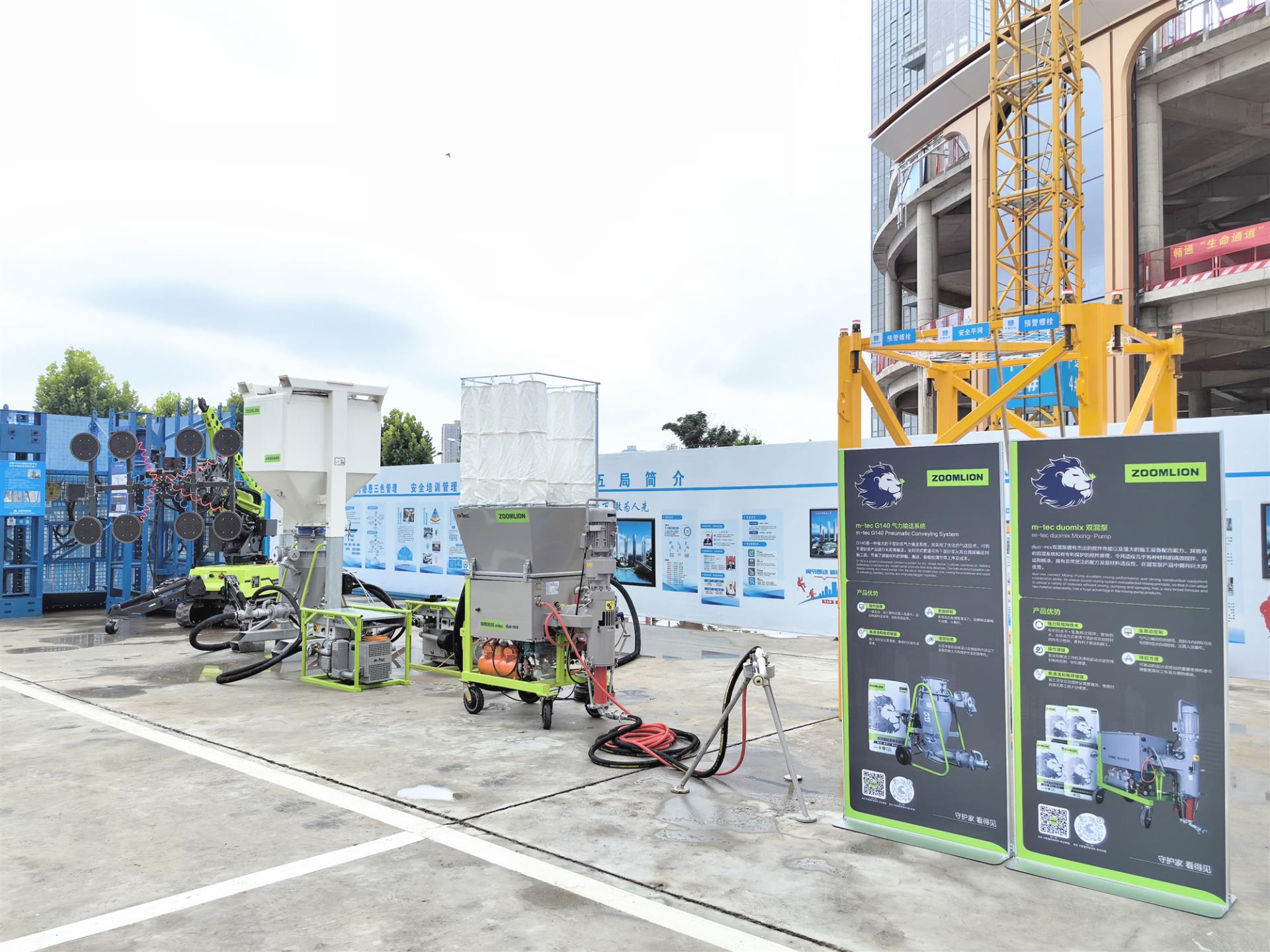 据介绍,中联重科为项目量身打造的墙面机械化施工解决方案——“可机施水泥基轻质抹灰砂浆+GDP/Duomix+机械化施工的新工艺工法”,在多环节运用传感器联动,实现了“智能化运作,一键启停”,施工现场无粉尘排放,无干粉湿浆落地,无需清洗输送管道,具有安全、高效、绿色环保等显著优势。