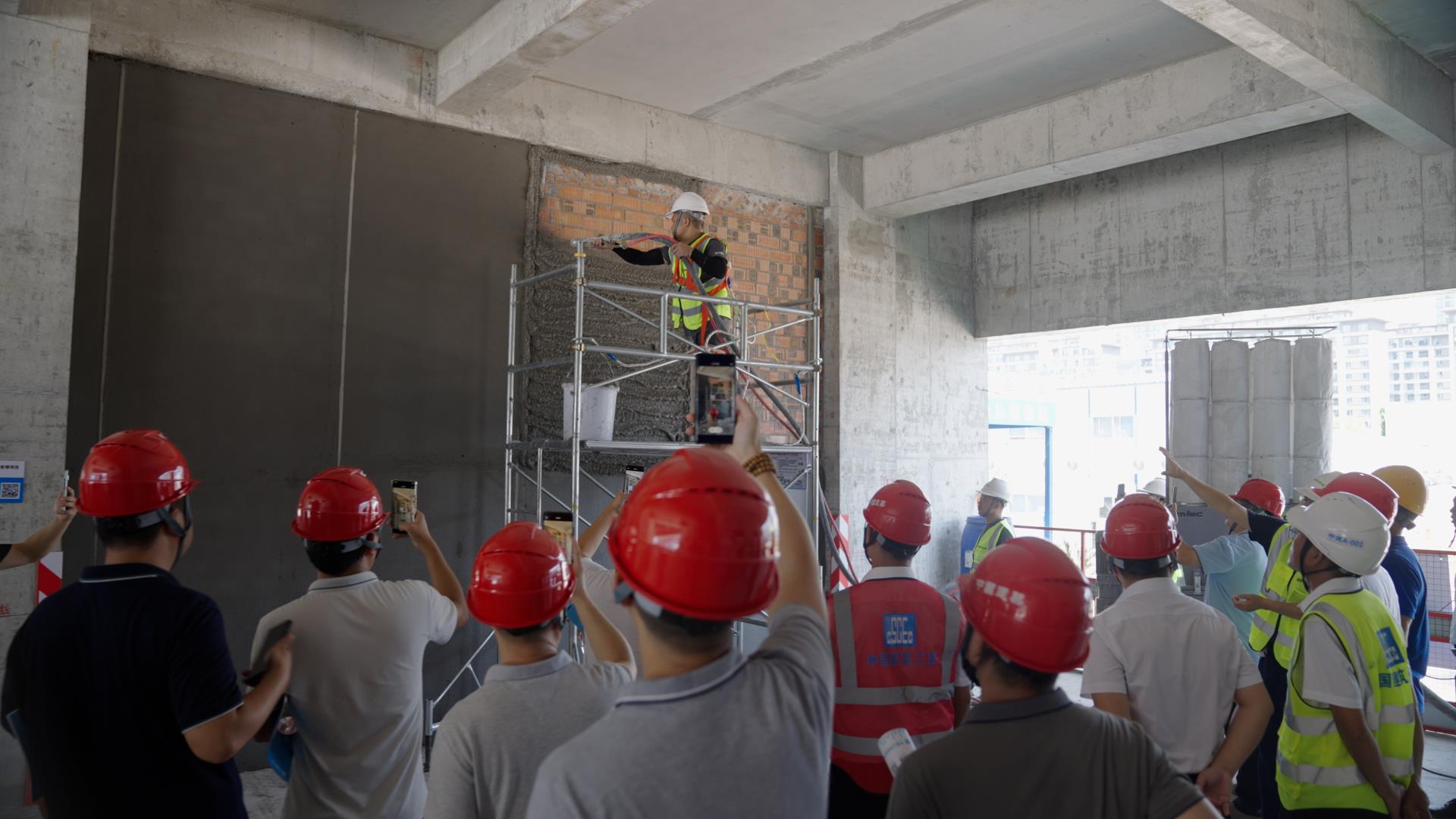 现场工作人员介绍道:“整套系统只需2—3人操作,施工效率快,人均每天可达100平方米,是传统效率的2倍有余。”