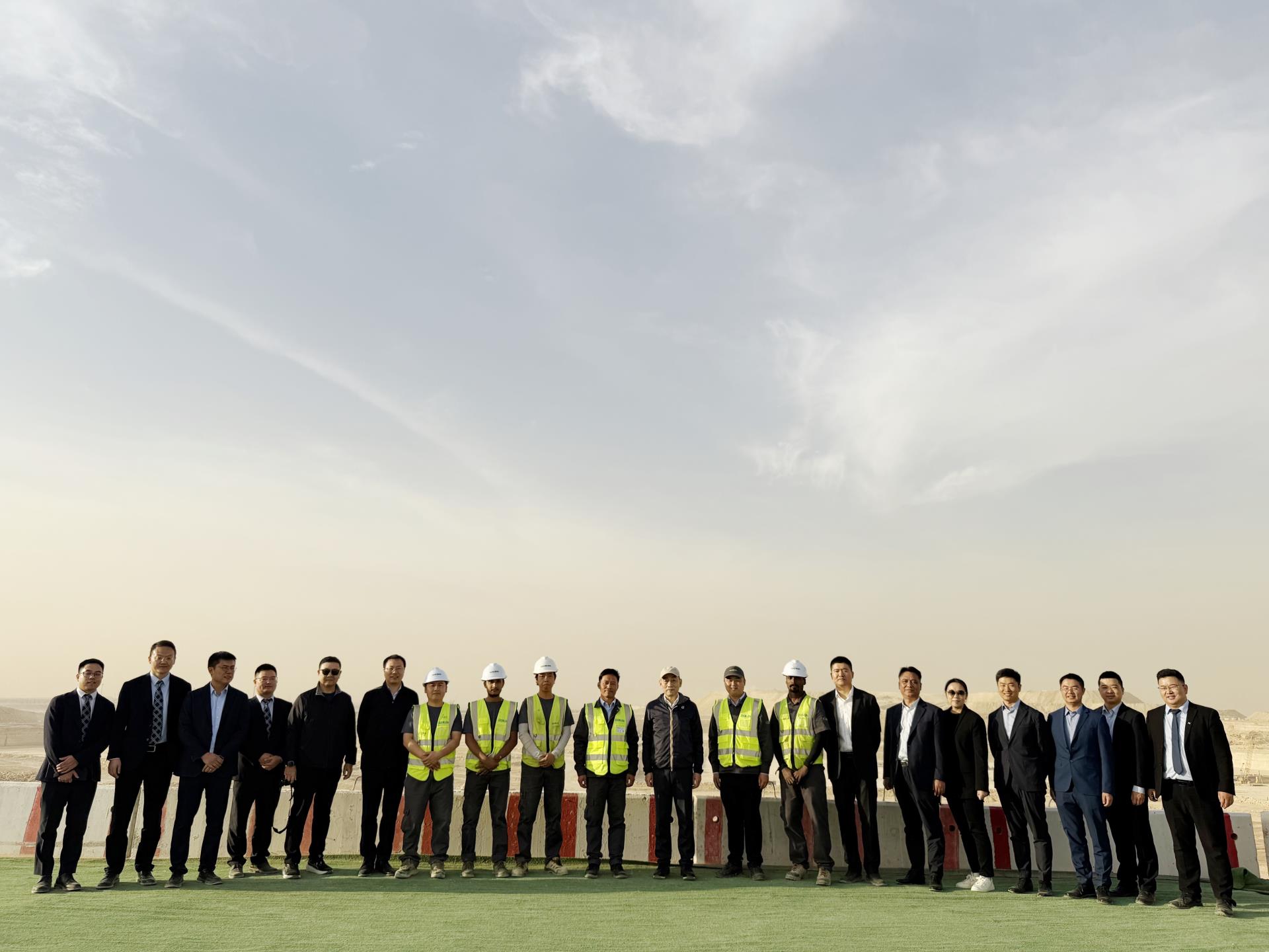 ▲中联重科董事长、CEO詹纯新与相关高管在利雅得四方城项目现场