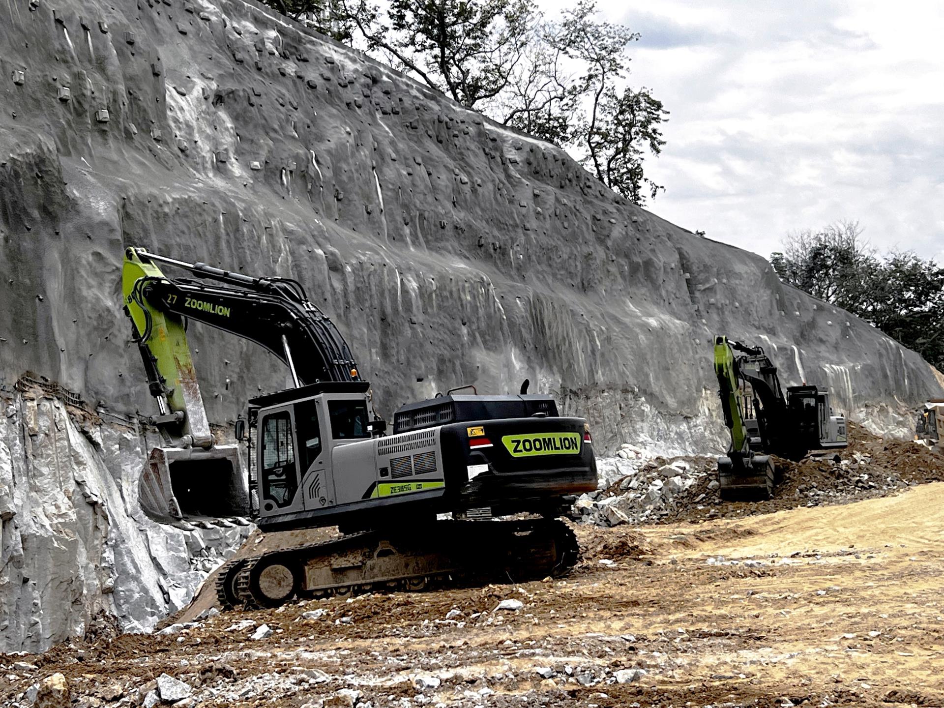 ▲中联重科挖掘机在项目施工现场