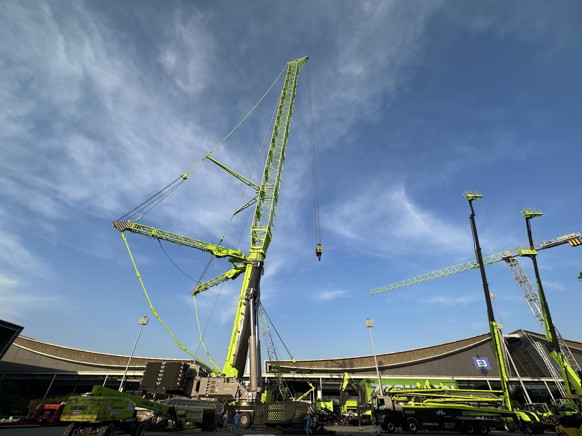 5月12日,在长沙国际会展中心中联重科展区,作为本次长沙展中**高、**大的设备,中联重科全球**大吨位4000吨级全地面起重机已经高高耸立在现场。随着展期的临近,全球高端装备制造龙头企业——中联重科9大类、近百台设备已基本完成进场组装,将全面展示中联重科在高端化、智能化、数字化、绿色化等方面的创新成果。