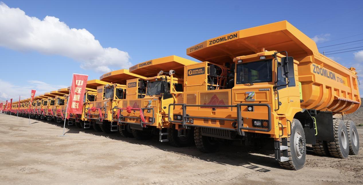 此次批量交付的全球**大混动宽体车中联重科ZT160HEV,专为矿山工况研发,其采用全国产化配置和公司首创的混联混合动力技术,创下载重**大、能效**优、制动**稳三项行业之**。“黄金组合”的另一位“搭档”百吨级矿用挖掘机ZE1350G,则拥有行业同吨位**大自重、10方斗容,矿山重载作业稳定而高效,并搭载行业领先的**四代ECDC专利技术,提升操控精度及动力链稳定性,轻松实现极致单方油耗。