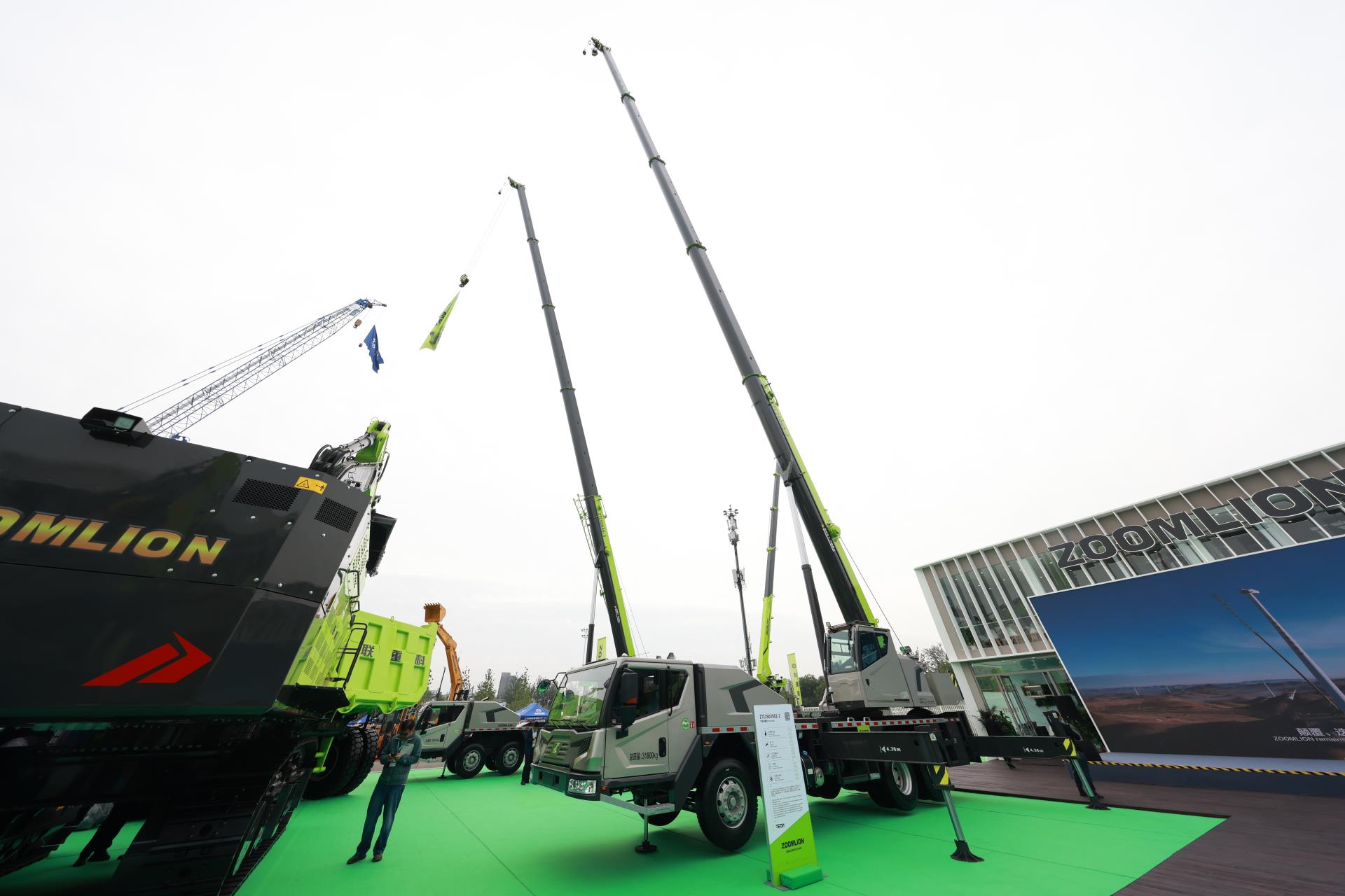 随车起重机ZLT3500V501则拥有超广作业幅度、超长伸臂高度、超高起重稳定性,高效灵活、性能强劲;该产品拥有20米极致臂长和8米支腿跨距,展示出极强的作业灵活性,搭载的双联液压系统,卷扬起升速度快而稳,复合动作一气呵成。此外,还有**大布料高度可达72.1米,行业**稳的73米混凝土泵车,以及操控精准、起重稳定的汽车起重机,这些明星产品成为展会现场的人气担当。