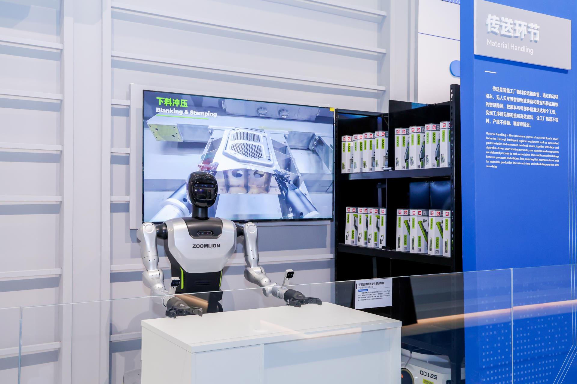 ▲中联重科人形机器人与智慧仓储物流整体解决方案展示