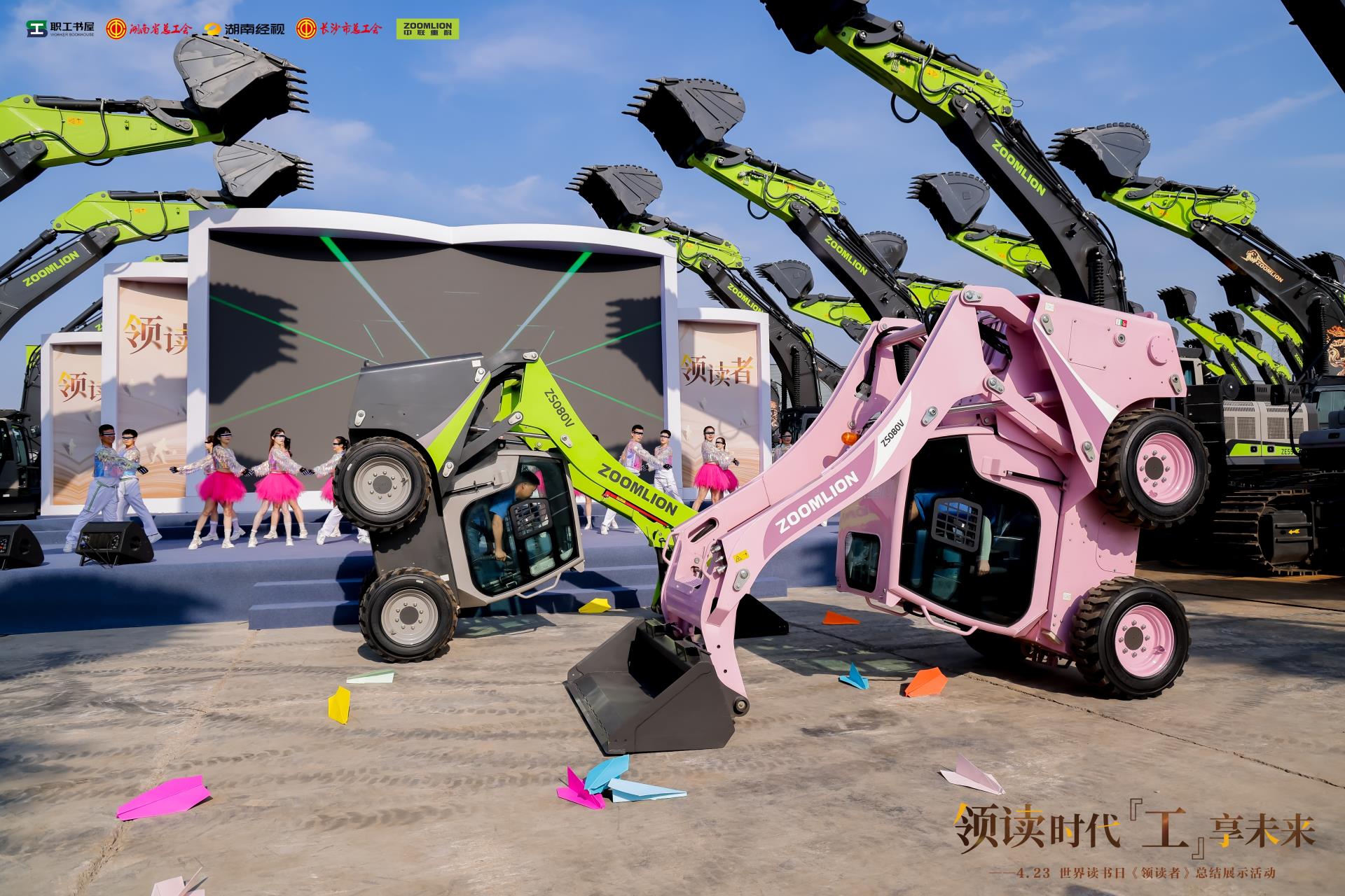 阳光下,中联重科智慧产业城内,一台台挖掘机整齐排列、环绕舞台,展现工业与科技的结合之美。中国工程院院士、茶学专家、湖南师范大学校长刘仲华,中国作协主席团委员、湖南省作家协会原主席、作家王跃文,湖南省音乐家协会理事、知名音乐人袁树雄,与劳模代表、工匠“领读者”纷纷走上舞台,通过书籍分享、情景讲述、诗词吟诵、歌舞表演等形式,呈现一场属于所有职工的阅读视听盛宴。