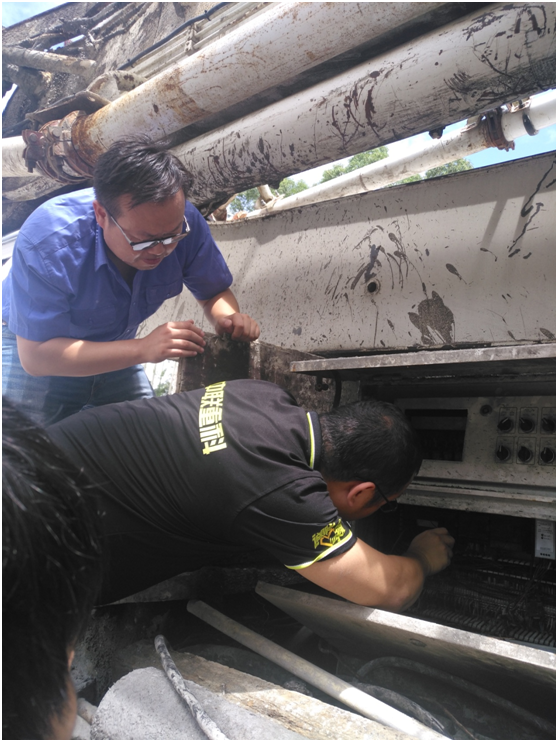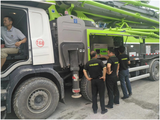 次日上午,小分队拜访了东莞的一位客户,针对客户**新采购的中联重科泵车进行全面检查与交付。针对需要更换配件的情况,小分队当即为客户寻找并下达采购计划,迅速解决了客户的问题,得到了客户的赞赏。
