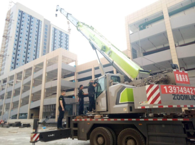 在简单的午餐后,小分队再赶往该公司的**二个工地,检查一台2009年交付的70T履带吊,该车在工地吊装钢筋笼、浇灌混凝土,对电气、液压、结构件进行了例检,发现行走驱动轮、履带板磨损较大,将常规保养和日常操作等告知了设备主管。
