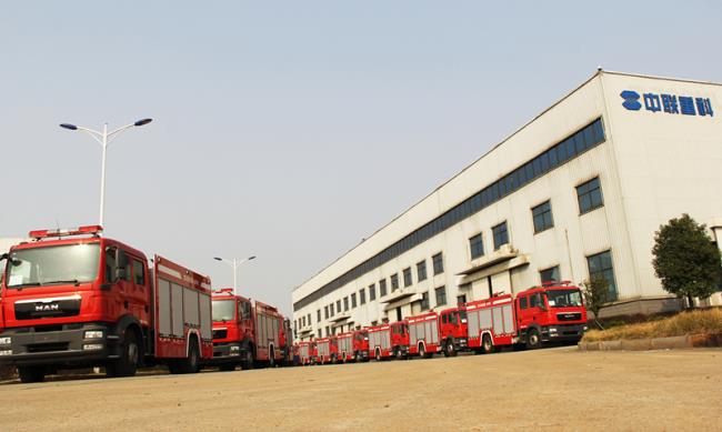 中联重科望城工业园23台城市主战消防车整装待发