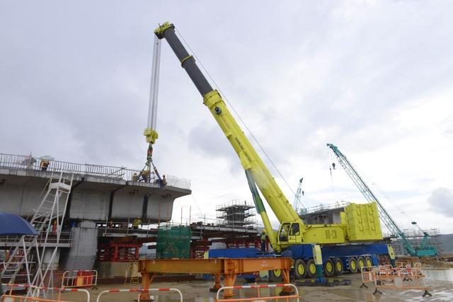 据介绍,自2016年11月底入场至今,QAY500安全工作逾1000小时,安装桥梁混凝土块超20000吨,整体项目完工之际,预计其还将起吊重物近90000吨。