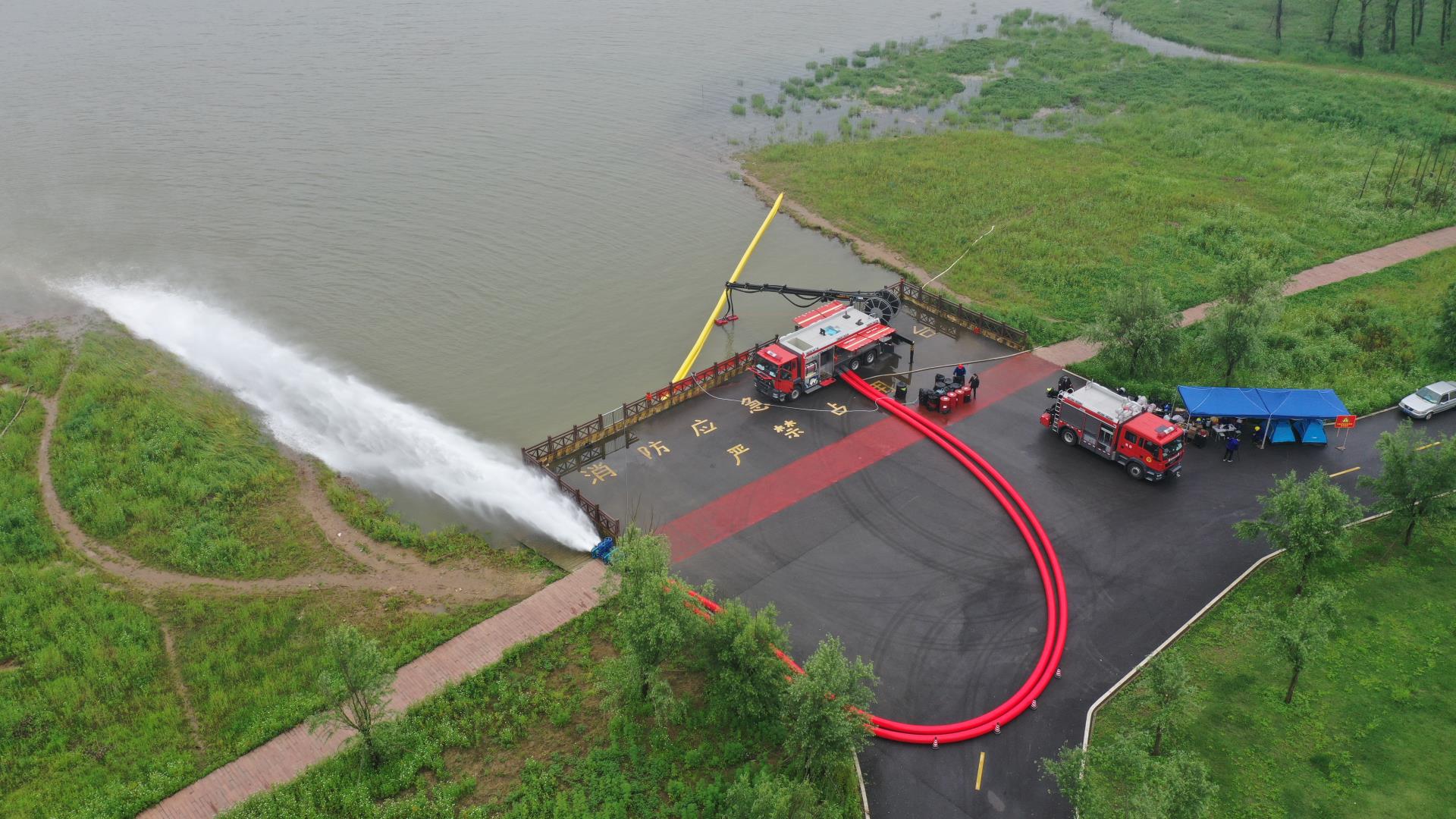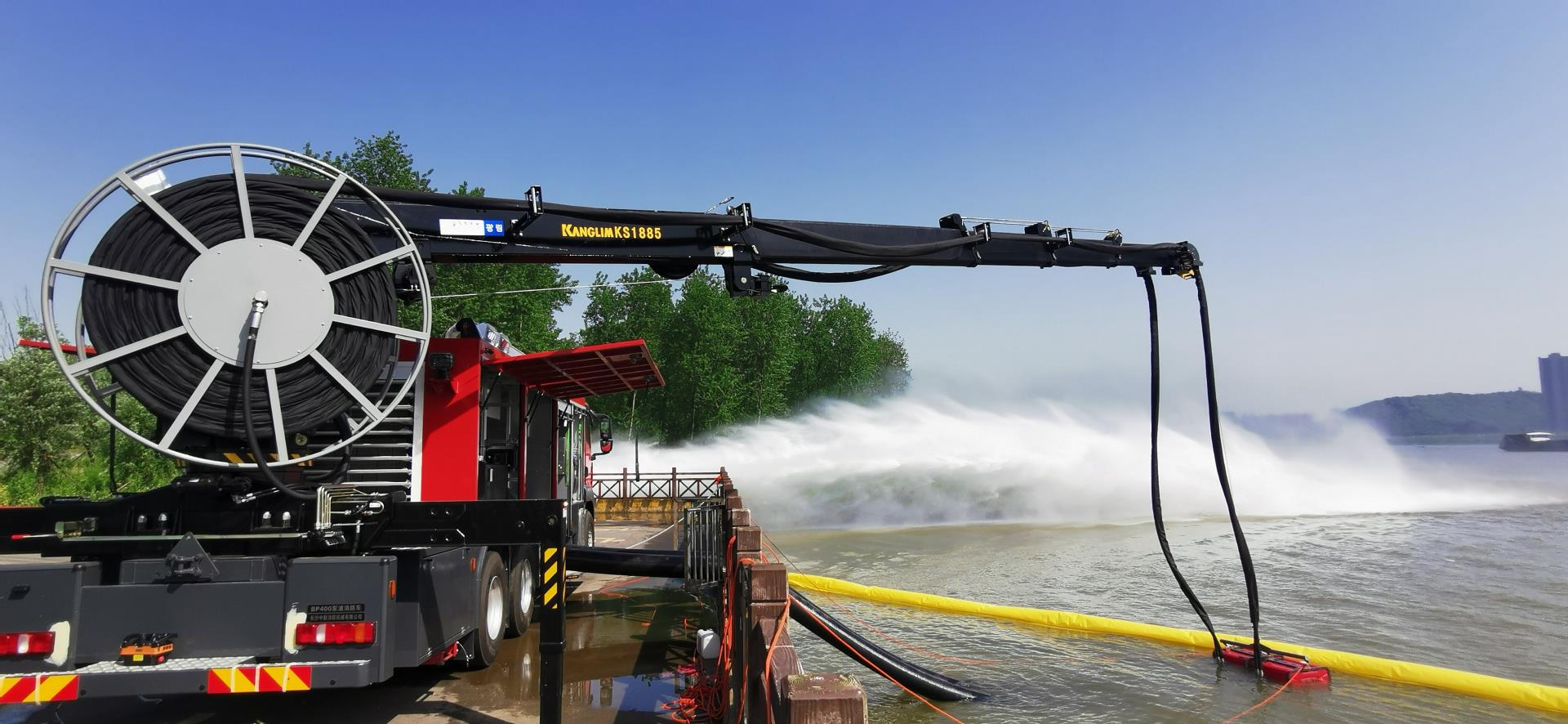 中联重科泵浦消防车为大流量远程供水系统的子车型,与水带敷设消防车和器材消防车配套使用。该系统可将几公里甚至几十公里以外的天然水源,科学合理、及时有效、不间断地输送到火灾现场,可同时给多台消防车或消防水枪、消防炮连续长时间供水,为火灾现场提供坚强有力的供水保障。