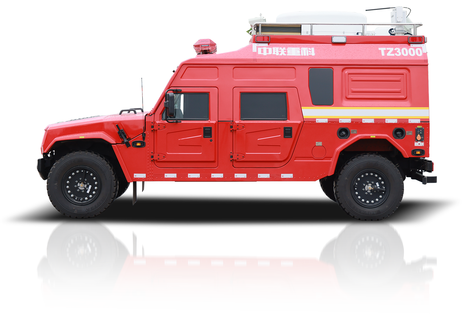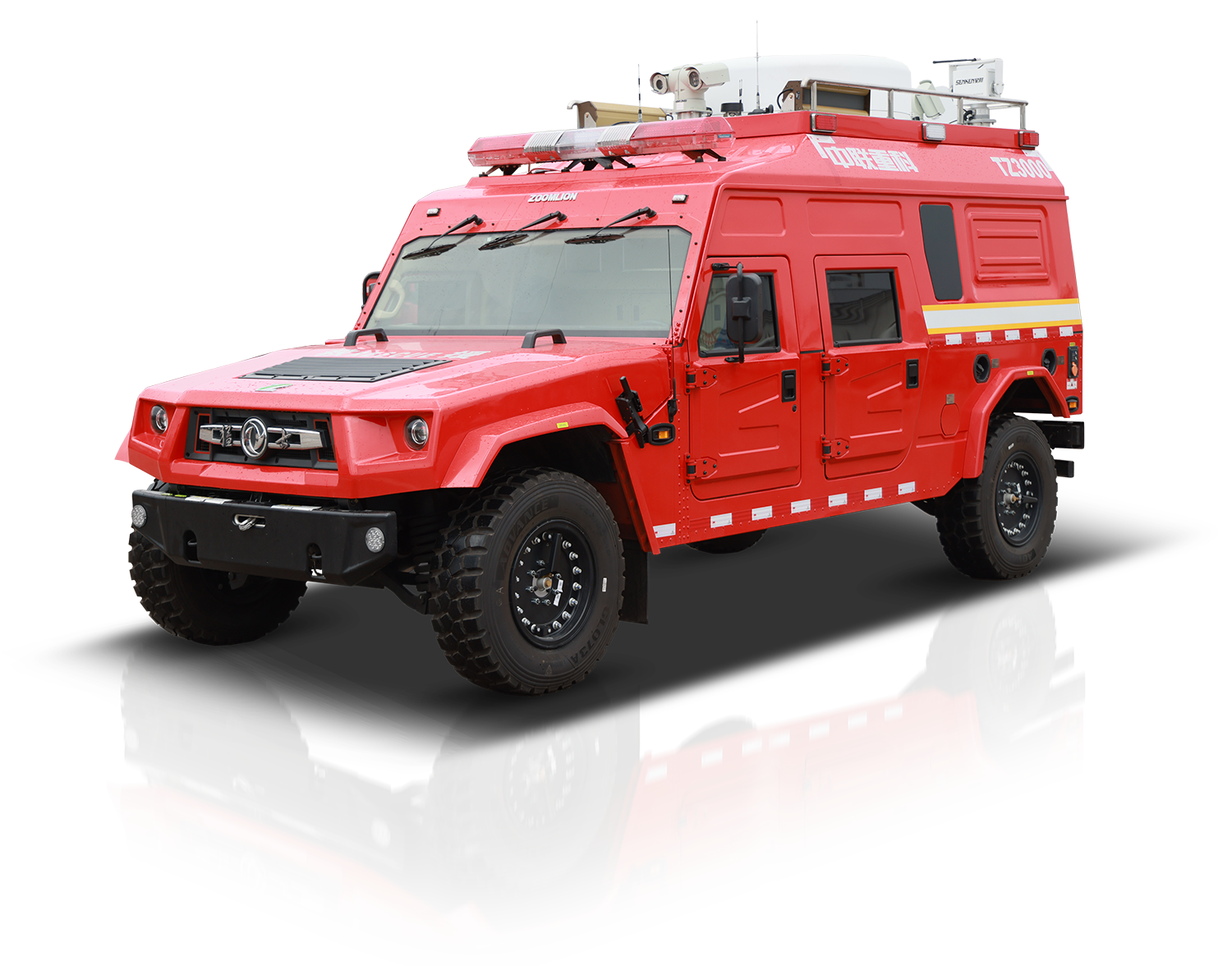 中联牌TZ3000-6型通信指挥消防车,采用东风猛士M50型4×4全驱专业军用越野底盘,极大地提升产品越野性能,满足应急救援过程中快速反应的使用需求,能够**一时间到达现场并与指挥中心建立通讯,提高救援效率。