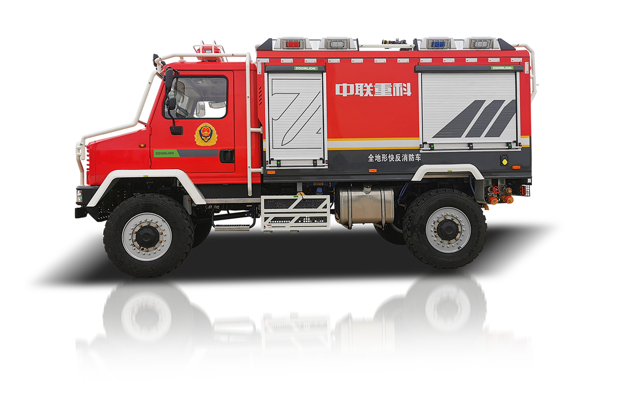 中联牌全地形快反消防车,是专门针对道路条件差、空间狭窄、普通消防车辆难以及时达到而研制的特种救援车辆。采用独立悬挂轮式全驱系统,涉水能力优越,越障能力强,功率强劲,外形紧凑,机动性好。上装采用紧凑型用水量极少的压缩空气泡沫系统,配备铰拉、照明功能,适合全天候全地形救援和灭火作业。